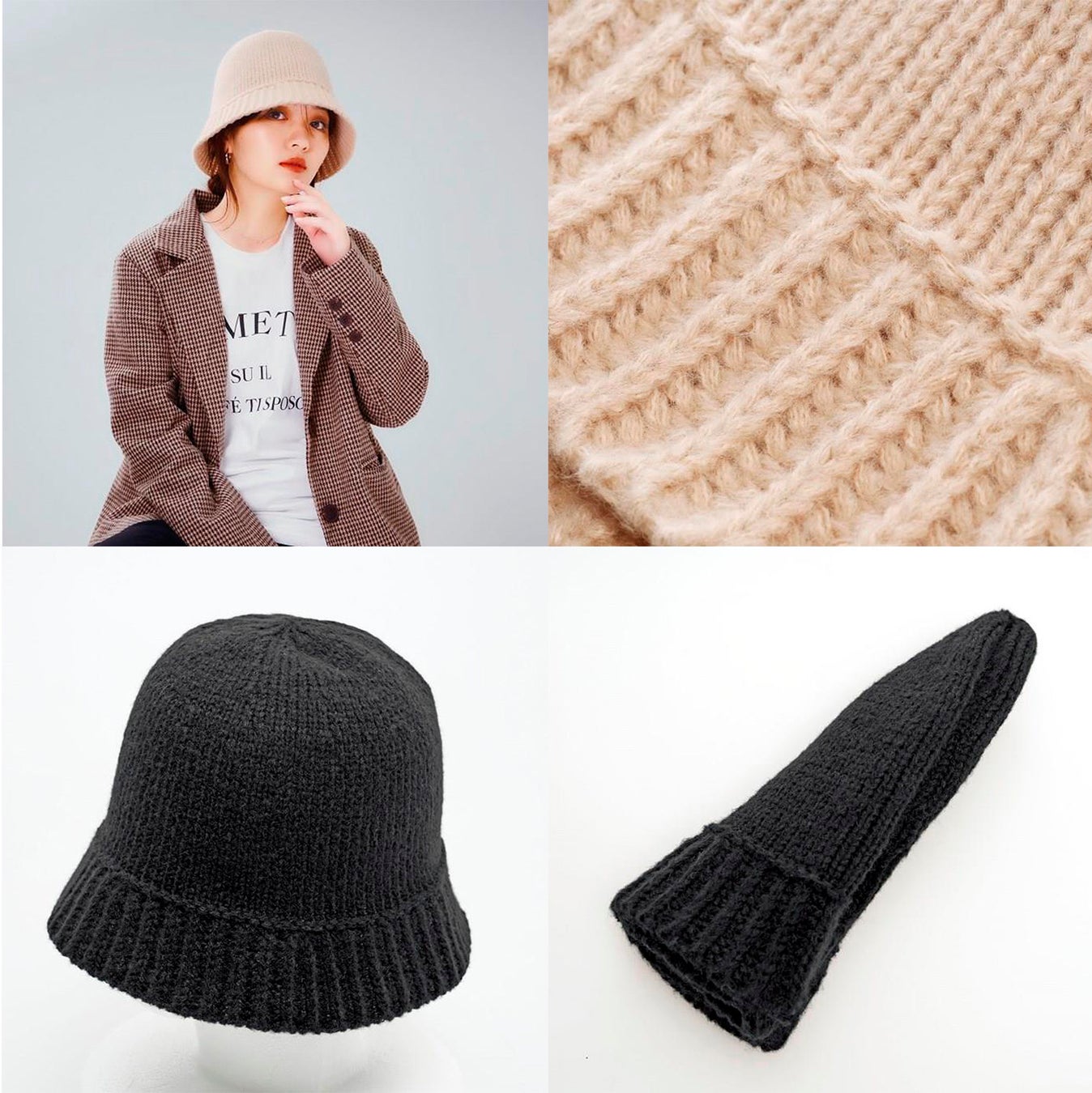 あったか小顔見えバケットハットニット BLACK/WHITE