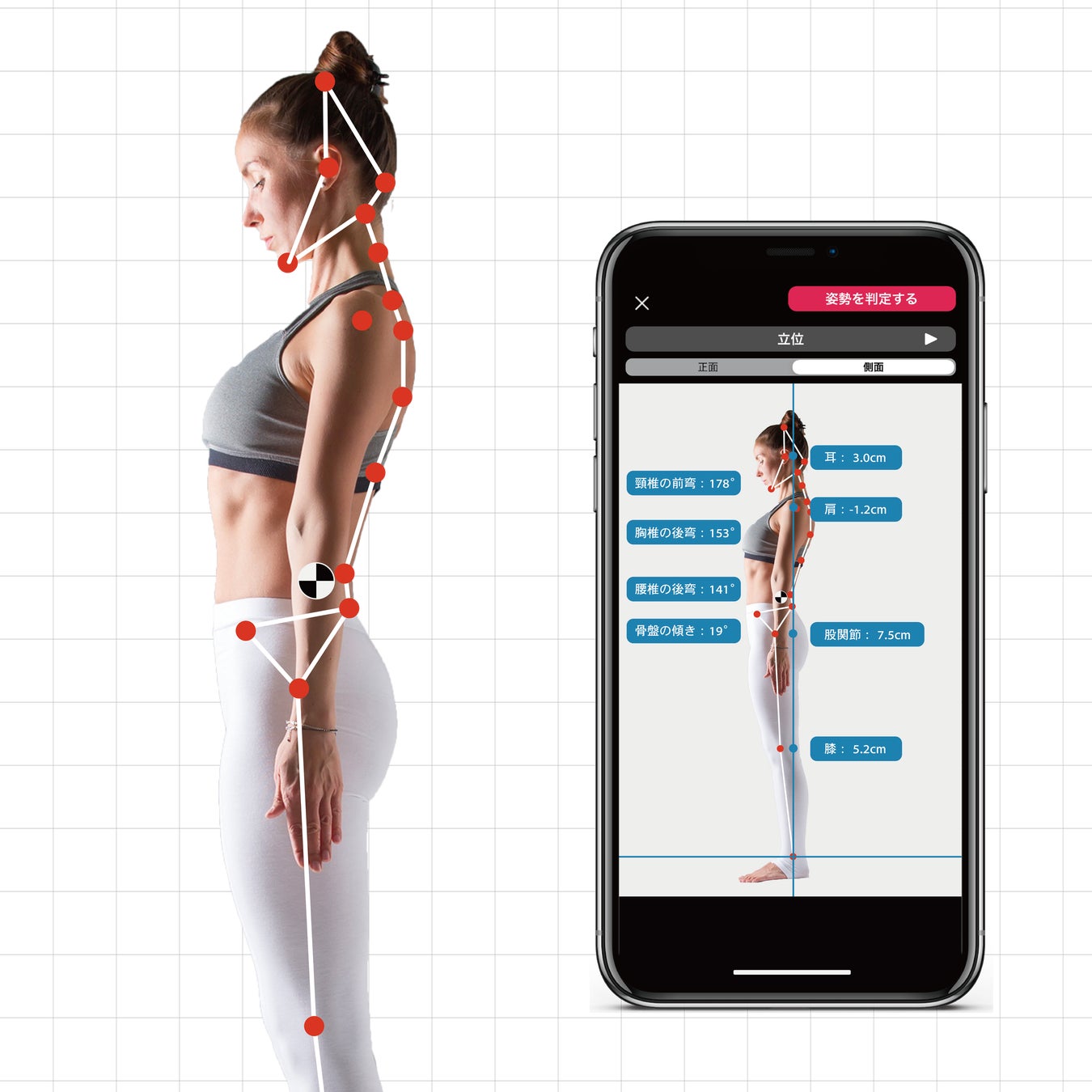 姿勢解析ソフト「Sportip」は、筑波大学発のスタートアップ企業が開発した技術を活用しています。正面や側面の姿勢を解析し、その組み合わせで姿勢のタイプを分類。データに裏付けされた高精度な技術に基づき、将来の姿勢の傾向を生成することが可能です。