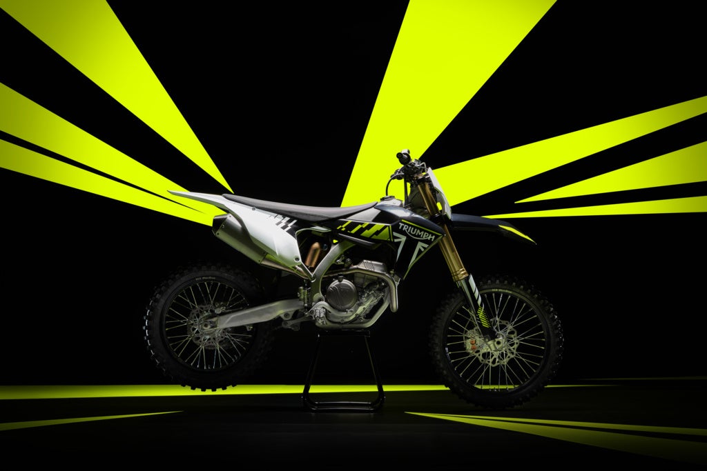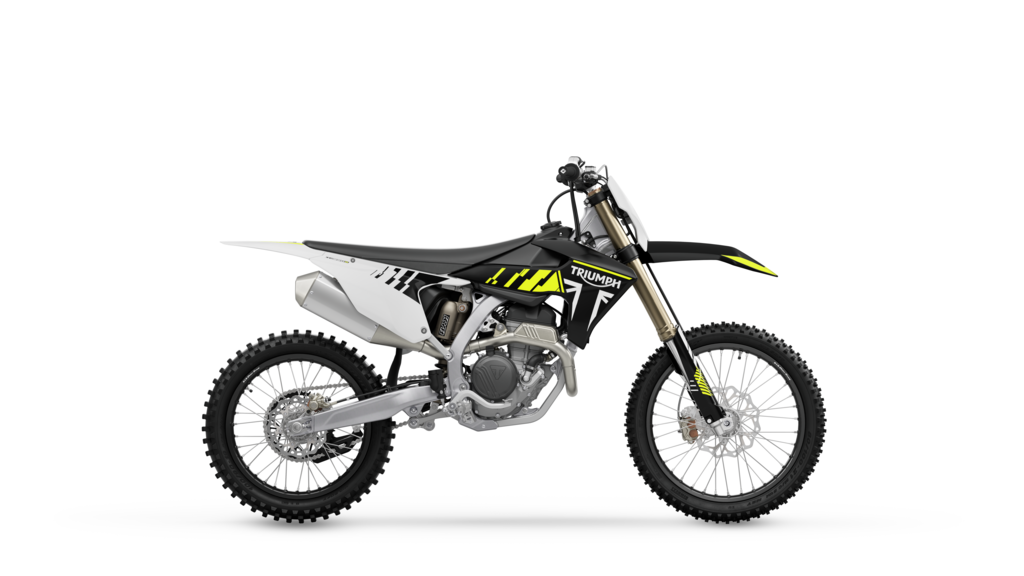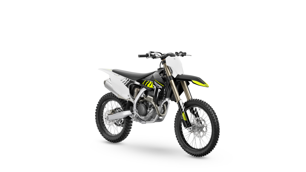 リッキー・カーマイケルやイバン・セルバンテスをはじめとするレースチャンピオン達との密接な協力体制のもと、トライアンフが全面的に開発した新しい4ストローク・コンペティションモデルは、まったく新しいデザインです。