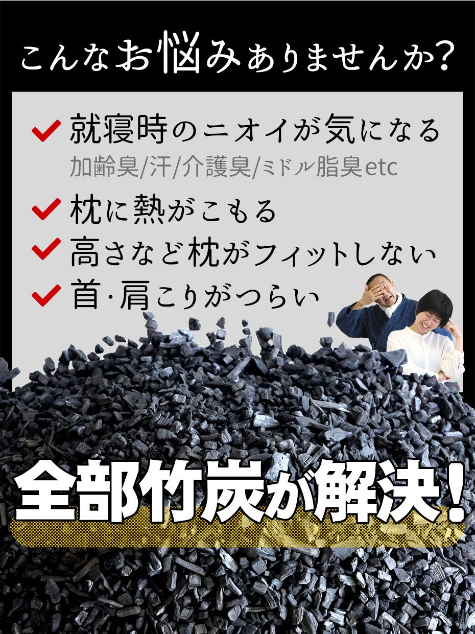 さらに、竹炭が持つ調湿特性により、寝汗などによる湿気を抑え、快適な睡眠環境づくりに役立ちます。適度な硬さがあるため頭が沈み込みすぎず、安定した寝心地を維持できる点も特長です。枕にはカバーと二重の不織布が付属しており、竹炭の粒が外に出にくい構造で、日常使いにも配慮されています。