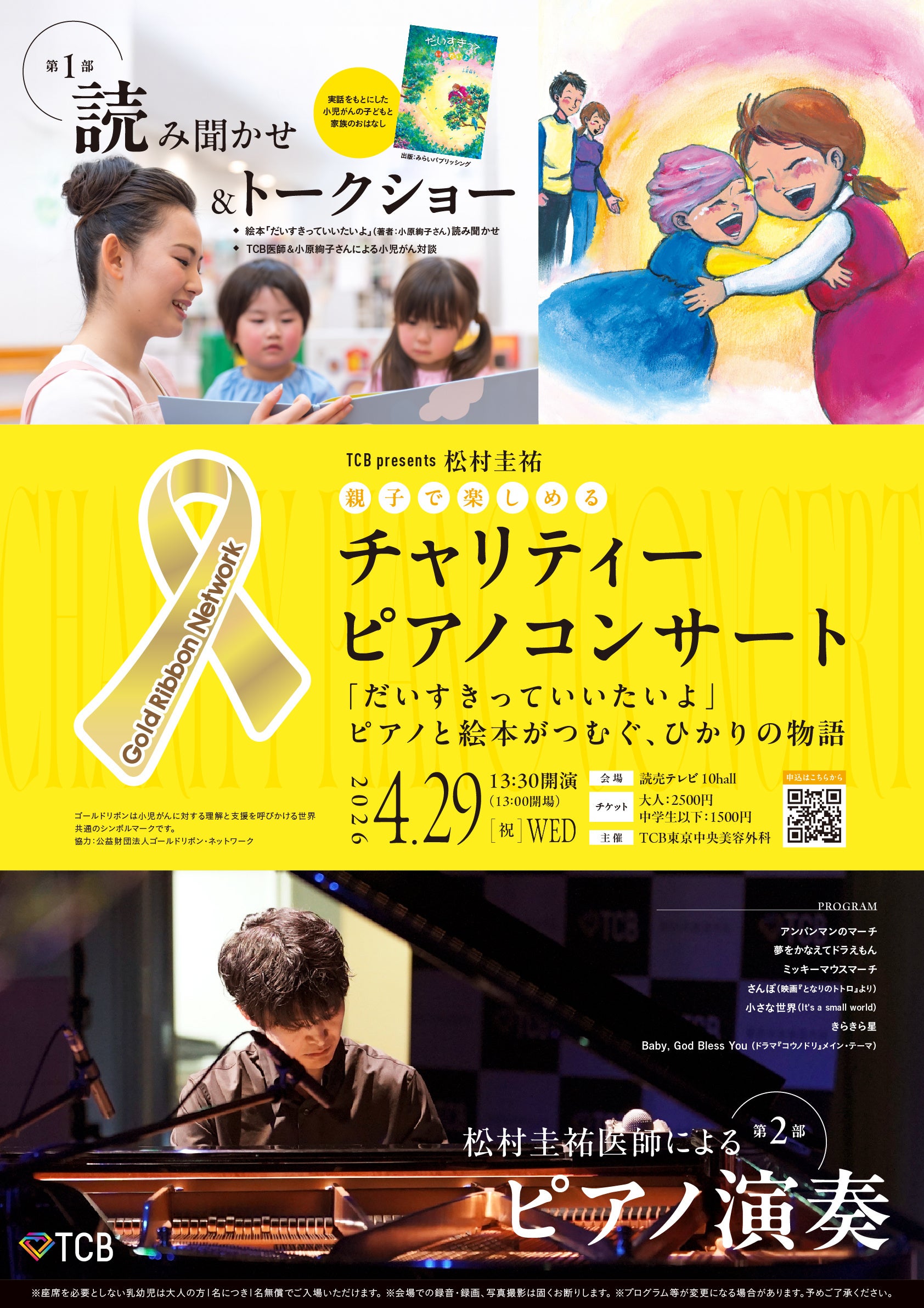 【TCB】小児がん啓発・支援チャリティーコンサート開催決定! 松村圭祐医師によるピアノ演奏と共に、実話をもとにした小児がんがテーマの絵本『だいすきっていいたいよ』著者による読み聞かせと対談を行います。