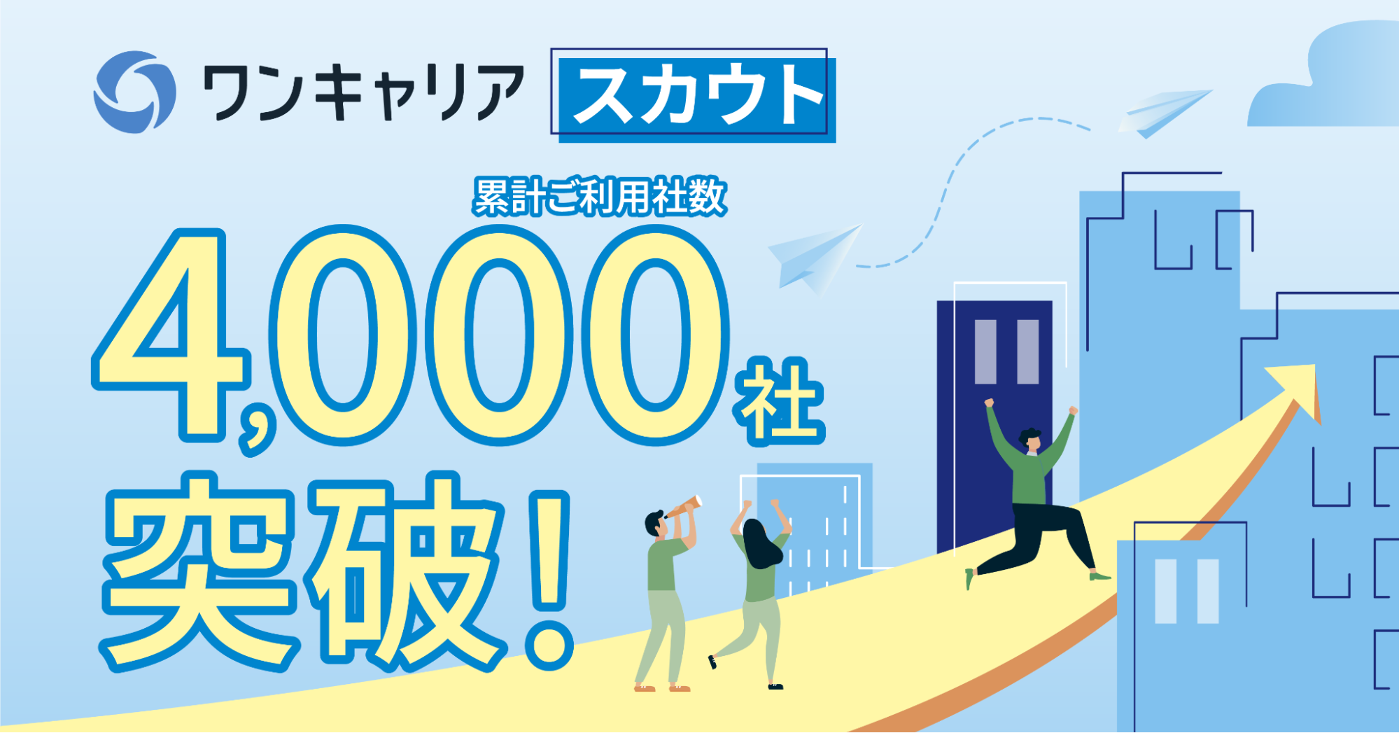 新卒採用サービス「ワンキャリア」を展開する株式会社ワンキャリア(本社:東京都渋谷区、代表取締役社長 執行役員CEO:宮下 尚之、以下「ワンキャリア」)は、スカウトサービス累計ご利用社数が、2026年3月時点で4,000社を突破したことをお知らせします。2025年8月に3,000社を突破してから、およそ7ヶ月での達成となります。