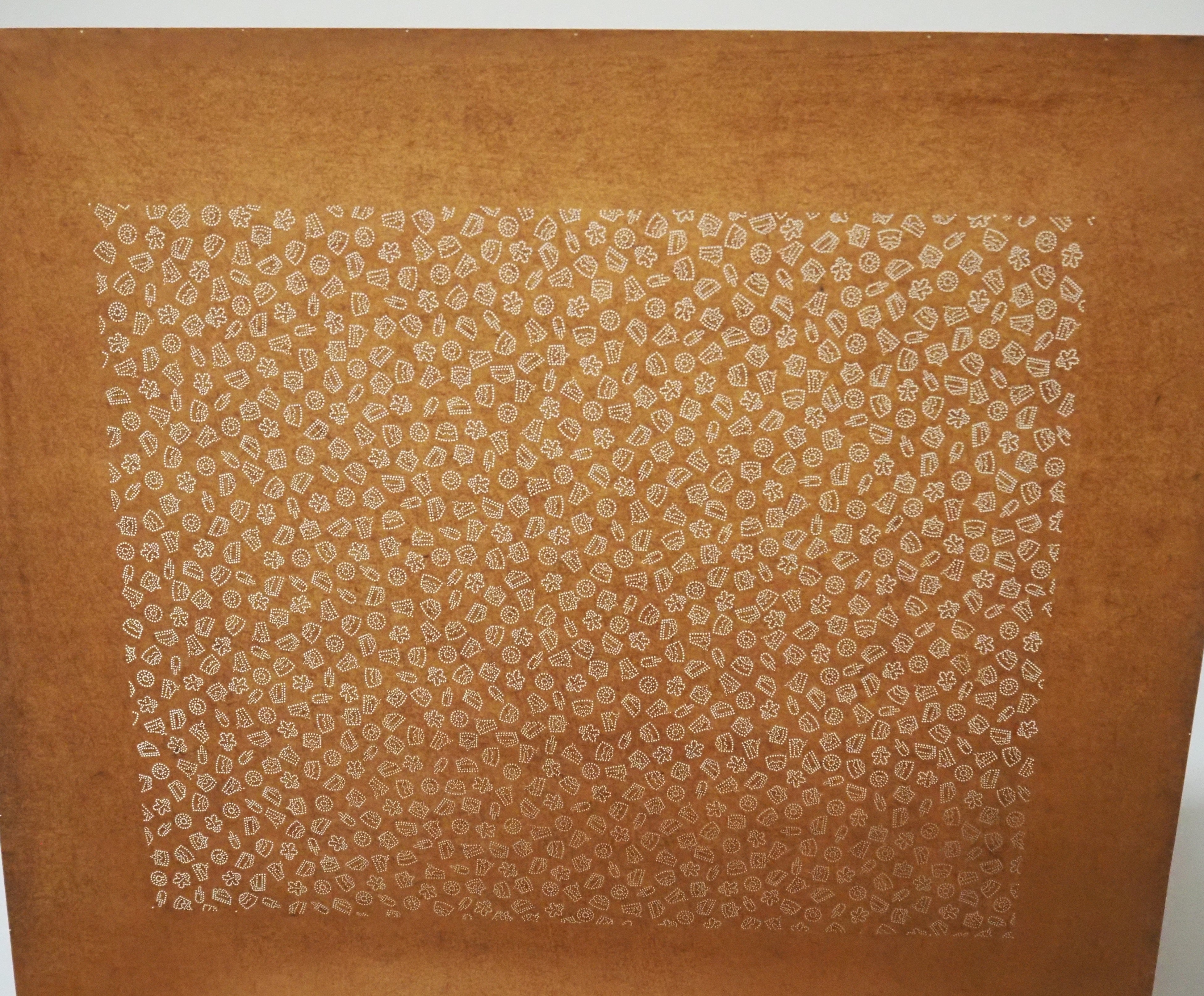 「江戸小紋」は、型染による染物であり、「東京染小紋」として経産省指定の伝統的工芸品にも指定されています。しかしながら、その代表的な技法である錐彫りの紋様は、マニュアル化が難しく教本もないため、図案家が減少している中で、制作理論の伝承が困難になっています。その為現在では、以前の紋様を繰り返し使った復刻、もしくは図案家ではない型紙彫り師や染め屋による少量の新柄しかありません。特に、錐彫り技法の「けれんもの」は、小さなモチーフをランダムに配置するため、図案構成が難しく新作がほとんど生まれていない状況です。