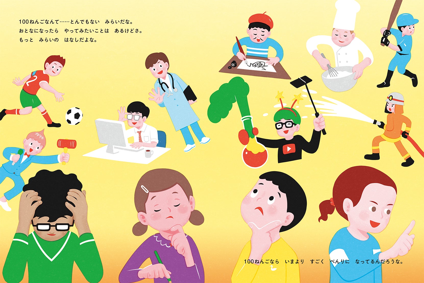 みんなで思い思いの未来を描いていると、とつぜん知らない子がこんな事をいったんだ。