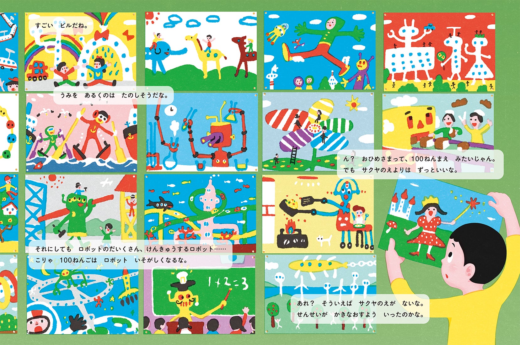 この「100ねんごもまたあした」を含む『100年後えほん』シリーズのテーマはずばり100年後の未来。こんな時代だからこそ、あらためて未来に向き合い、描くことで、そのなかにある希望を子どもたちに伝え、もう一度未来にわくわくドキドキしてほしいという思いから企画されました。