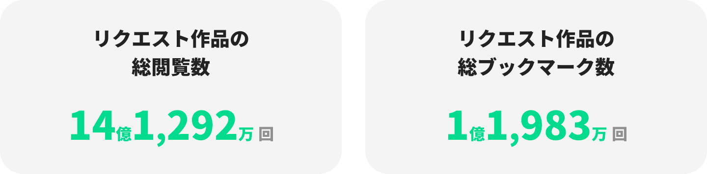 リクエスト作品の総閲覧数は14億、総ブックマーク数は1億を突破