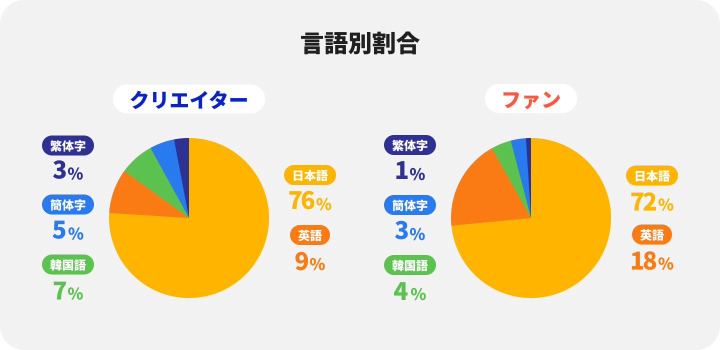海外ユーザーの比率は年々増え続けており、クリエイターの24%、ファンの28%が日本国外からのユーザーとなっています。リクエストやファンレターの内容を自動翻訳する機能が、2023年5月に韓国語にも対応し、言語の壁を越えて多くのユーザーが「好き」の気持ちを伝えあっています。