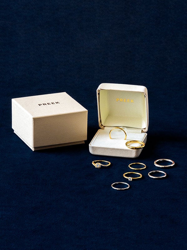 待望のブライダルコレクションがローンチされます。ブライダルリングは、原点である甲丸リングを軸に、PREEKらしく、金を温かくて有機的な素材として捉えたYU-KINシリーズより、表面に凹凸を持たせたデザイン。マットな仕上げなど、ハンドメイドならではの仕上げに拘りリングの太さもお選びいただけるよういくつかのラインナップを紹介いたします。ファインジュエリーの工房にて職人が一点一点丁寧に作られる特別なリングです。