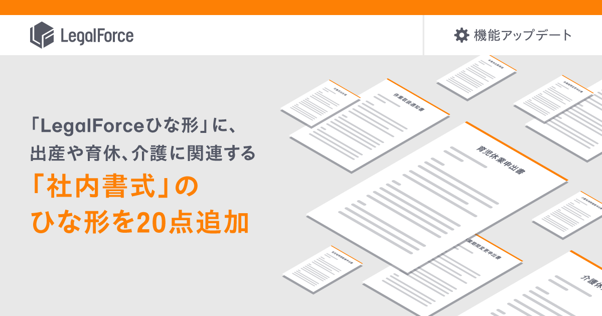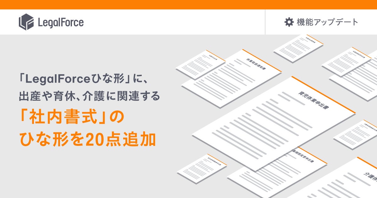 AI契約審査プラットフォーム「LegalForce」、「LegalForceひな形」に、出産や育休、介護に関連する「社内書式」のひな形を20点追加