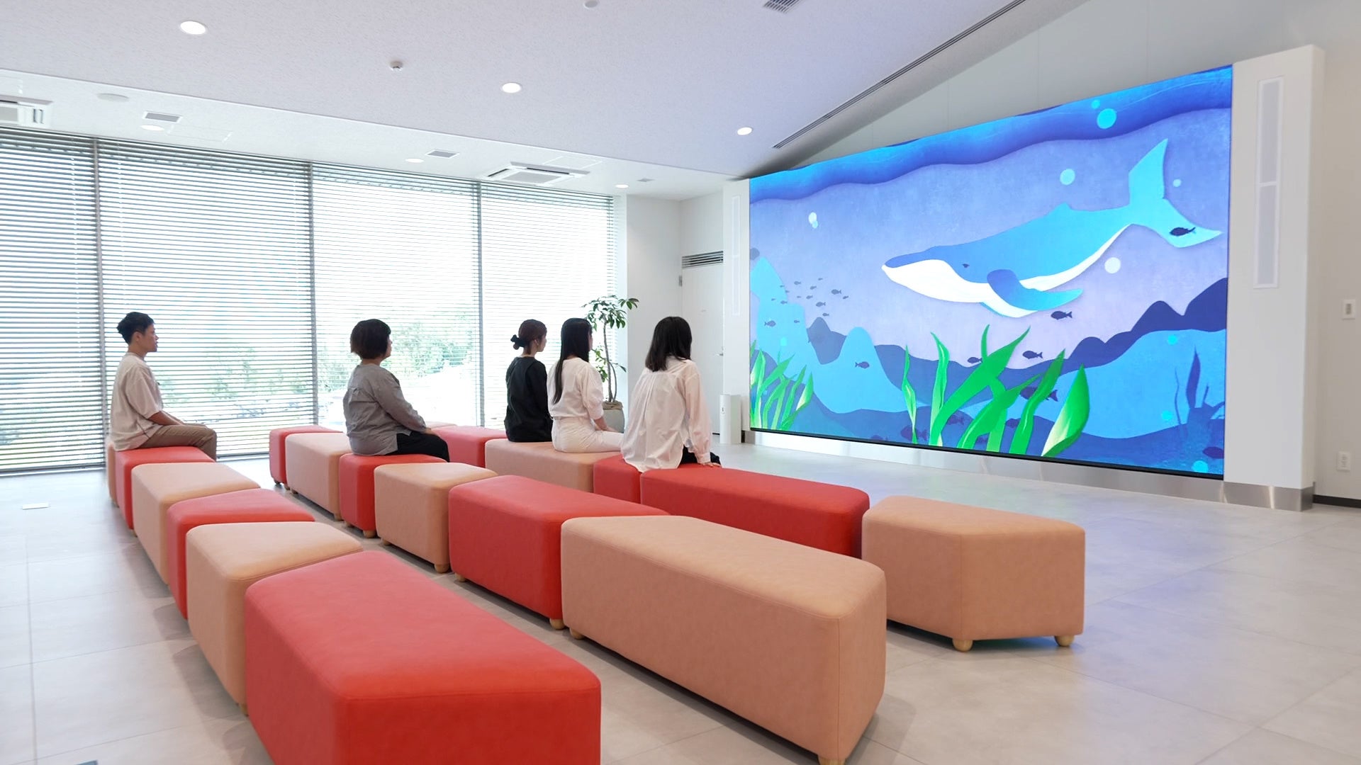 本社の『エントランス』では、企業のフィロソフィーと九州の四季のアクティビティをテーマとしたプロジェクションマッピング映像を制作。ビジネスで訪れるお客様にも、楽しんでいただける仕掛けとなっています。