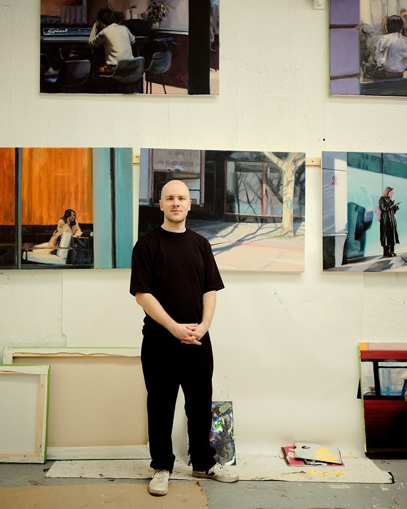 ロシャの実践は、アイロニーとユーモアを交えながら、社会的ダイナミクスや対人関係の複雑さを読み解くものだ。自身のプロセスを「コラージュ」と表現し、美術史からポップカルチャー、個人的記憶まで、多様なレファレンスを重ね合わせることで、現代における生活を解体・再構築する肖像画的な作品を生み出している。彼の絵画はこの社会を描きだす劇場として機能し、現代における対人関係の暗黙のルール、矛盾、混沌としたエネルギーを浮かび上がらせる。Jackson’s Painting Prize のショートリストに選出され、Elizabeth Greenshields Foundation Grant の受給者でもある。