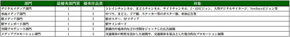 2023年4月1日から2024年3月31日の間に、当社が販売・管理を行う「JR東日本」「つくばエクスプレス」「ゆりかもめ」「りんかい線」「JR貨物」「しなの鉄道」の駅および車両のメディアならびに「街ナカサイネージ」に掲出・放映された広告作品を対象とします。