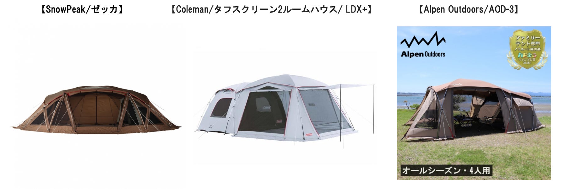 レンタルグッズは、Alpen Outdoorsならではの充実の品揃え!コールマン、スノーピーク、ロゴス、オガワ、ノルディスク、ムラコ、DOD、LOGOSなど、キャンプ場で実際に設営して使用感を試せます。レンタルグッズは、The BASE内に展示されており、当日その場で見て、気に入ったアイテムを借りることもできます。