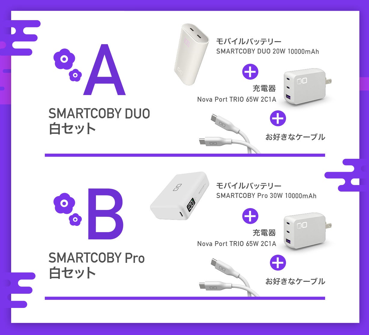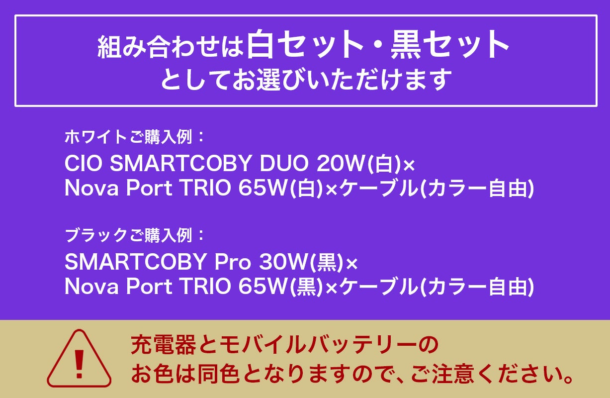 ※モバイルバッテリーと充電器のカラーは同色となりますので、予めご了承ください。