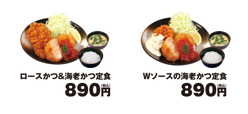 | 商品名 Wソースの海老かつ定食(キャベツ・ライス・みそ汁付) 890円 ロースかつ&海老かつ定食(キャベツ・ライス・みそ汁付) 890円 単品海老かつ 350円 ※お持ち帰りのみそ汁は、別途60円でお買い求めいただけます。 ※全て税込価格です。 発売日 2022年3月2日(水)午後3時~ 対象店舗 一部店舗を除く全国の松のや・松乃家 ※高速PA店舗を除く |