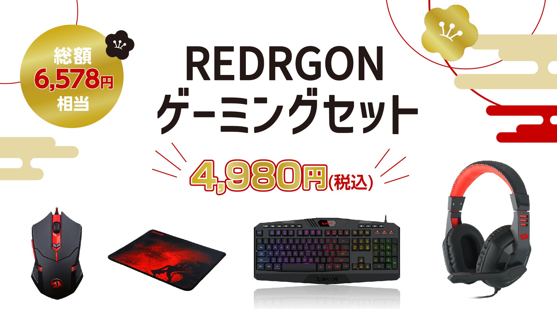 - 【10個限定】PCゲームをこれから始める方に最適 REDRGONゲーミングセット4,980円(税込) 総額6,585円相当