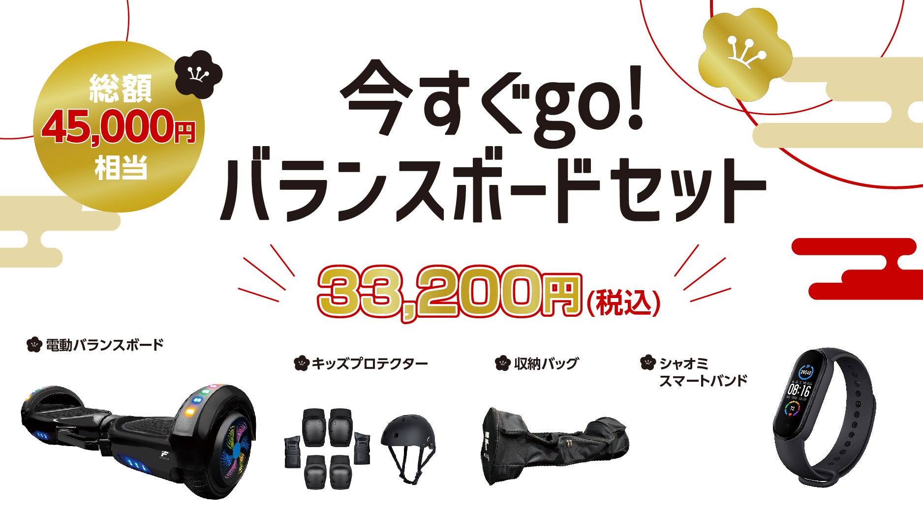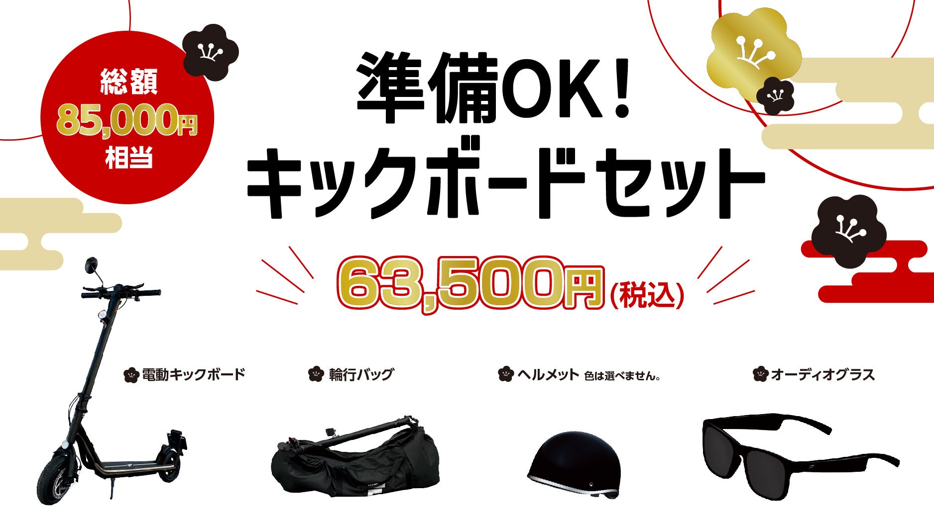 「準備OK!キックボードセット」は電動キックボードと輪行バック・ヘルメット・オーディオサングラスが入った、総額85,000円相当を63,500円(税込)で、「今すぐgo!バランスボードセット」は、電動バランスボードと収納バッグ・キッズプロテクター・シャオミのMiバンド5が入った総額45,000円相当を33,200円(税込)で販売します。