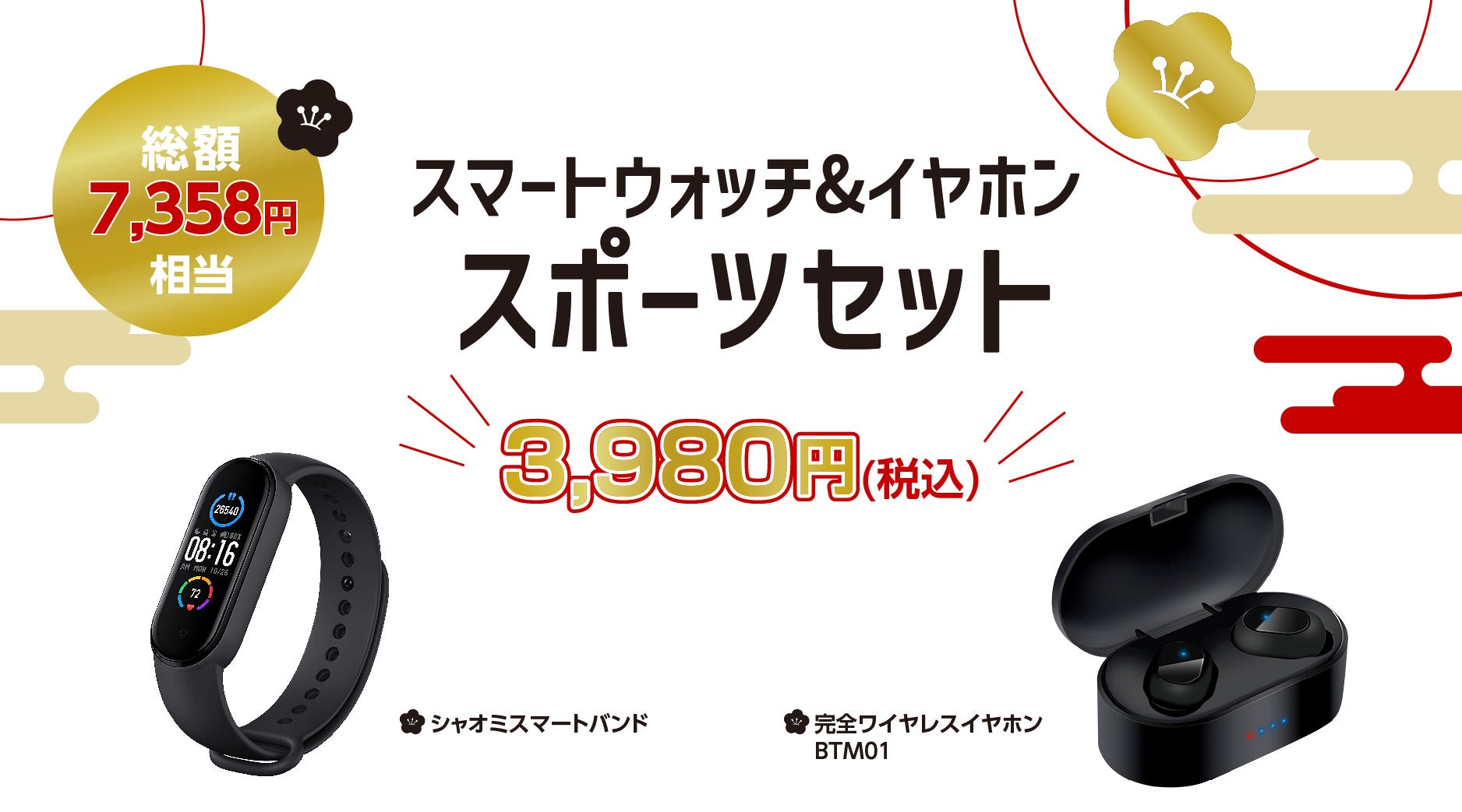 - 【10個限定】シャオミMiバンド5とシンプルな完全ワイヤセスイヤホン スポーツセット3,980円(税込) 総額7,358円相当