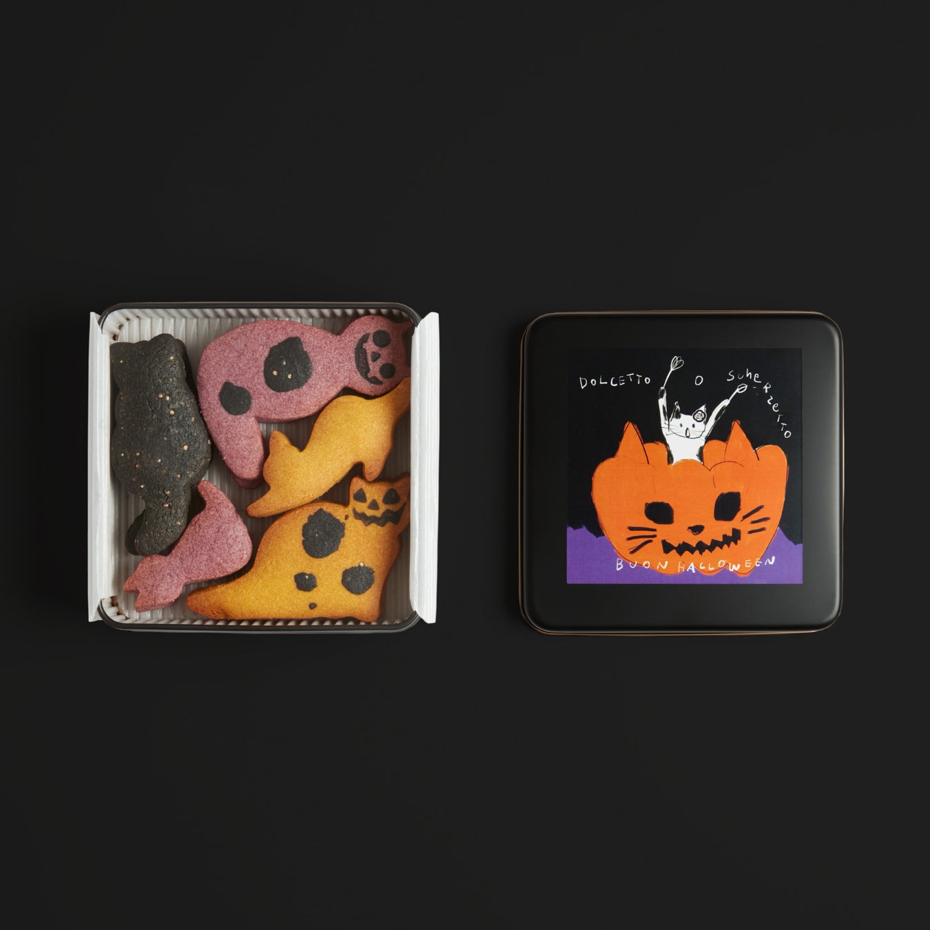 今年はクッキー缶もハロウィン仕様のマットブラックになって
