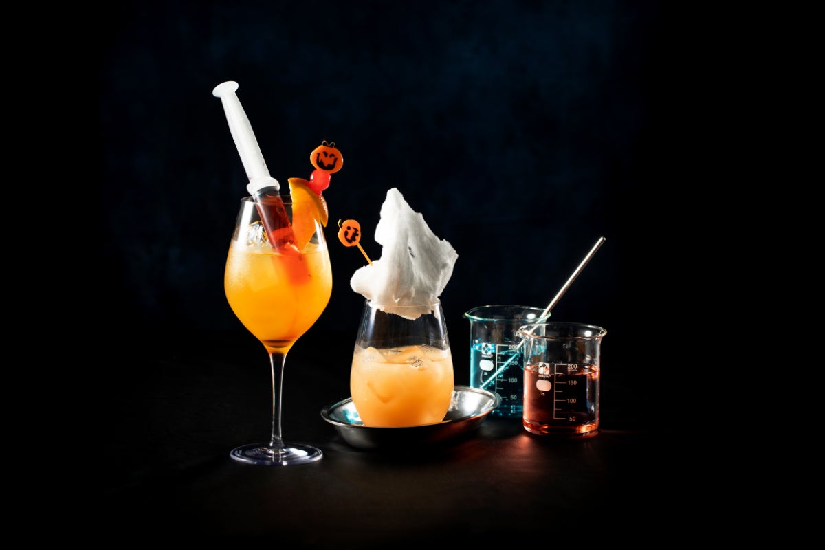 「実験室」をテーマにしたハロウィンの季節にぴったりな、魅惑のカクテル2種類をご用意。
