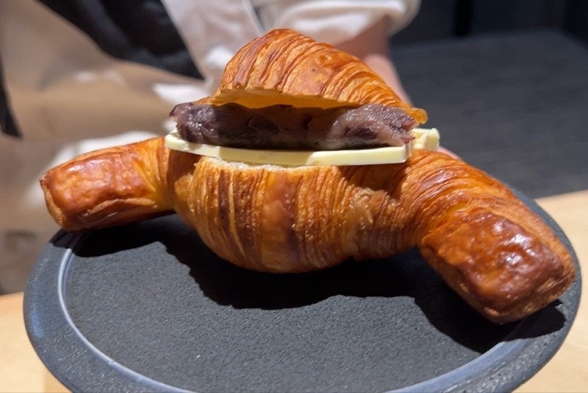 今回のメニューは、甘いもの好きのNAOTOさんからのリクエストを受けて誕生しました。フランス産発酵バターと有機小倉あんのあんバターを、自家製酵母のプレミアムクロワッサンでサンドした一品です。サクサクのクロワッサンと、あんバターとの最高の相性をお楽しみください。