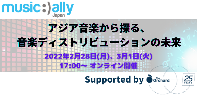 2022年2月28日(月)~3月1日(火)の2日間、音楽業界に特化したデジタルマーケティング支援を行うMusic Ally Japan(ミュージック・アライ・ジャパン)主催のイベントにThe Orchardスタッフがゲストと共に出演致します。