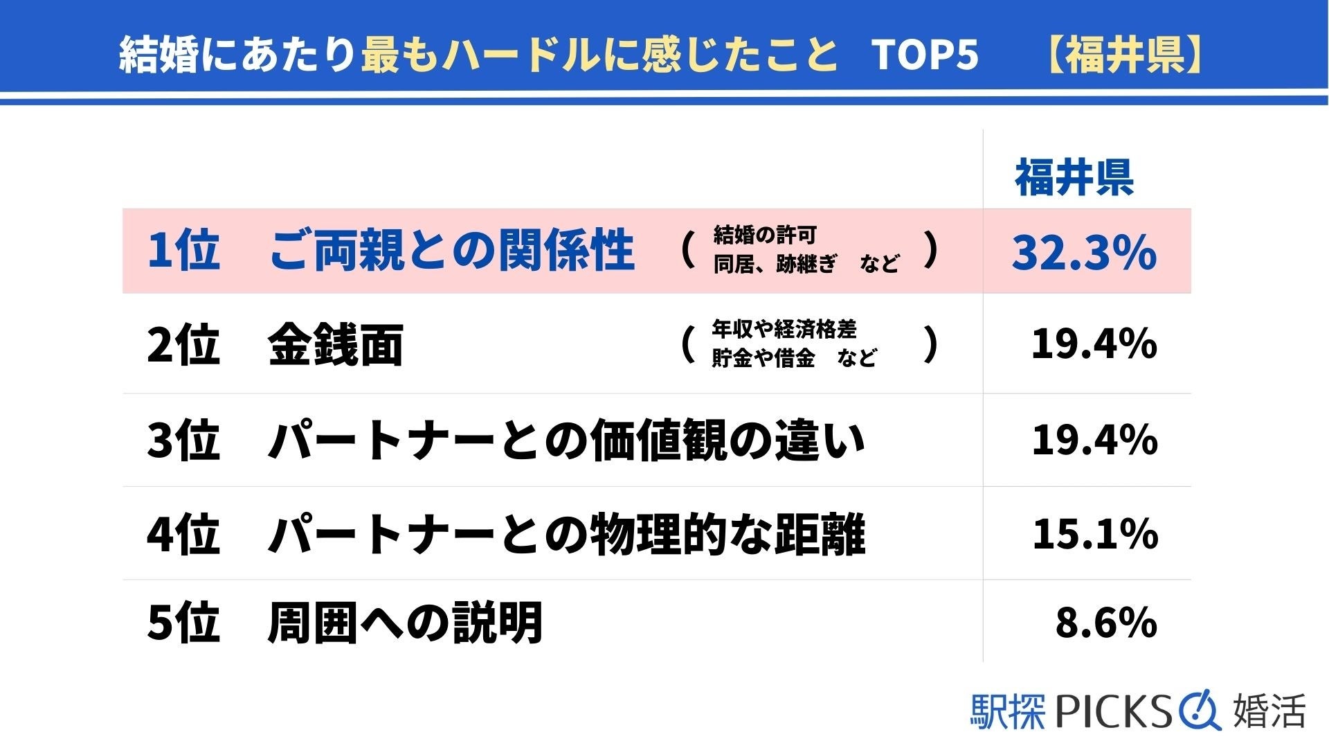 ■福井の人の結婚のハードルは「ご両親との関係性」が最多