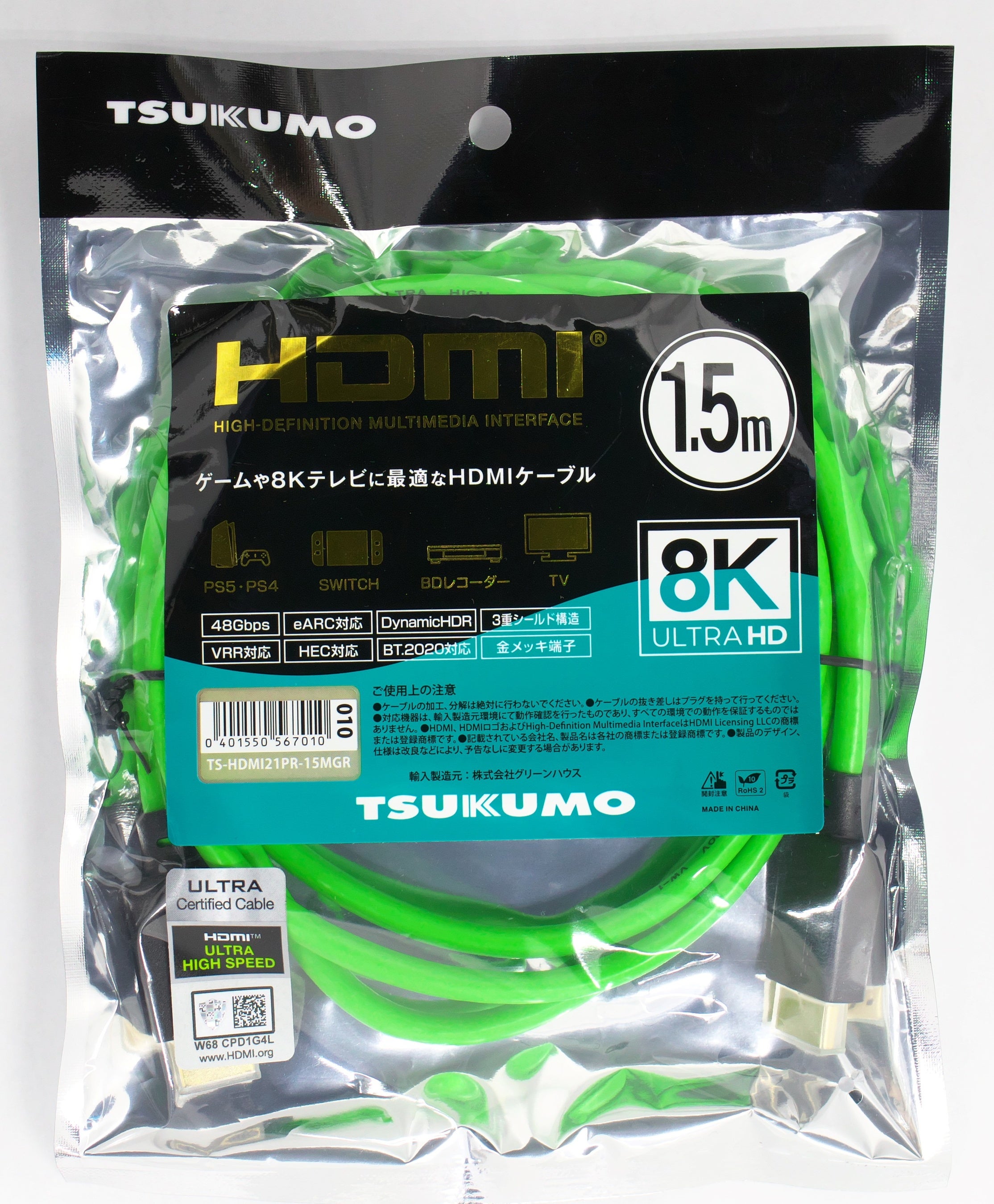 株式会社ヤマダデンキ(本社:群馬県高崎市、代表取締役社長:上野善紀)は、パソコンおよびパソコン周辺機器を販売するTSUKUMO(ツクモ)ブランドにおいて、「TSUKUMOプレミアムケーブル」として、HDMI 2.1ケーブルを発売いたしました。