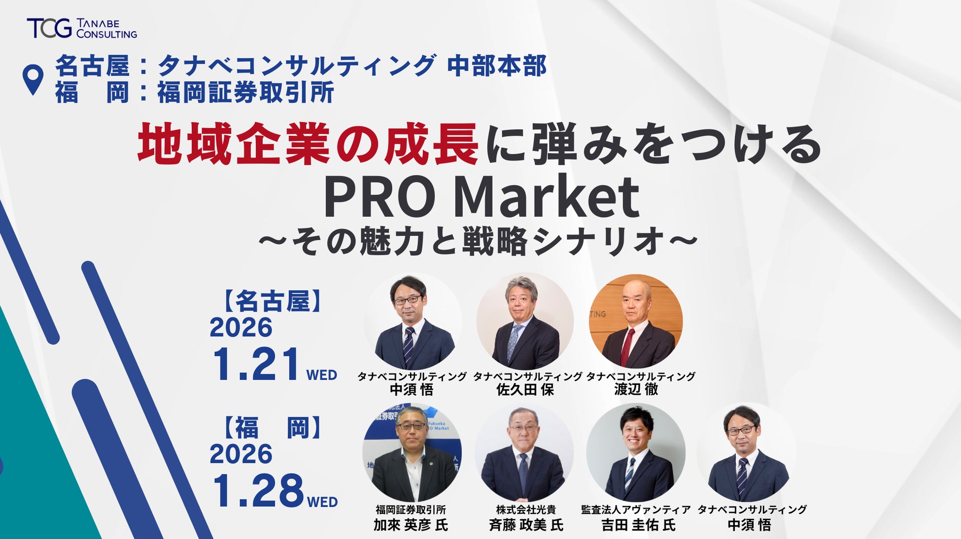 日本の経営コンサルティングのパイオニアである株式会社タナベコンサルティング(本社:東京都千代田区・大阪市淀川区、代表取締役社長:若松 孝彦)は、無料セミナー「地域企業の成長に弾みをつけるPRO Market ~その魅力と戦略シナリオ~」を開催いたします。