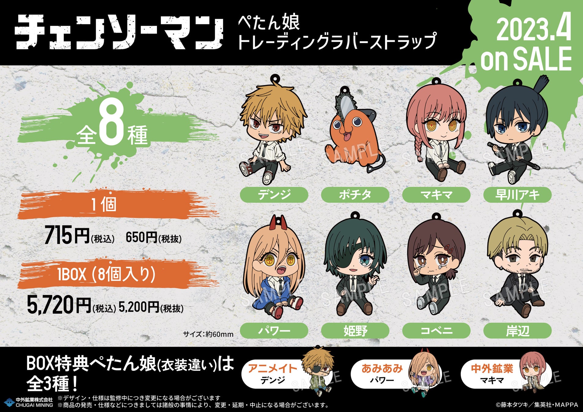 TVアニメ『チェンソーマン』より、ぺたんと座ったポーズがかわいい「ぺたん娘トレーディングラバーストラップ」が登場!!店舗別BOX特典ラバーストラップは3種類!