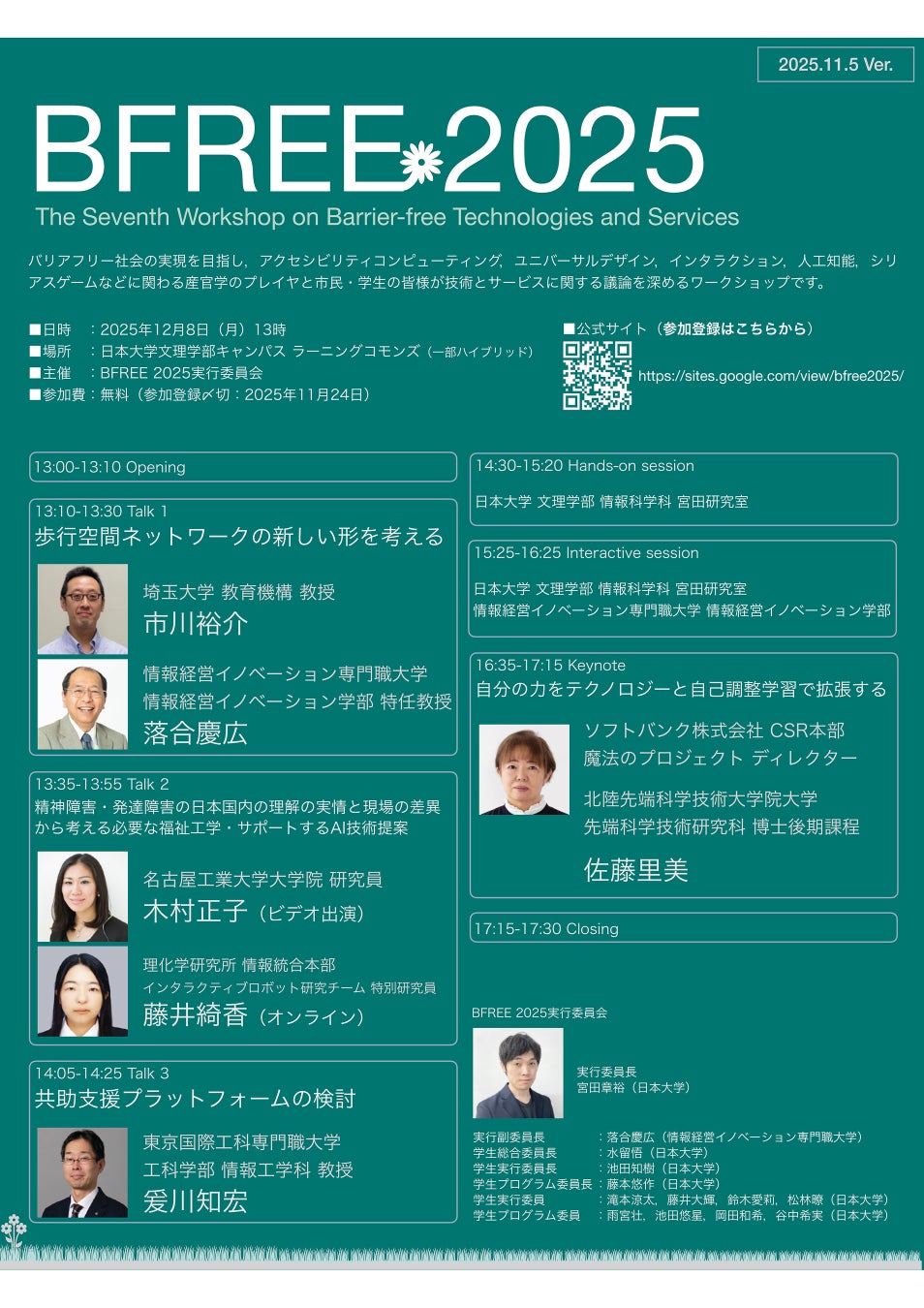 iU×日本大学文理学部共催 バリアフリー技術、サービスに関する産学連携ワークショップ「BFREE 2025」を12月8日(月)に開催