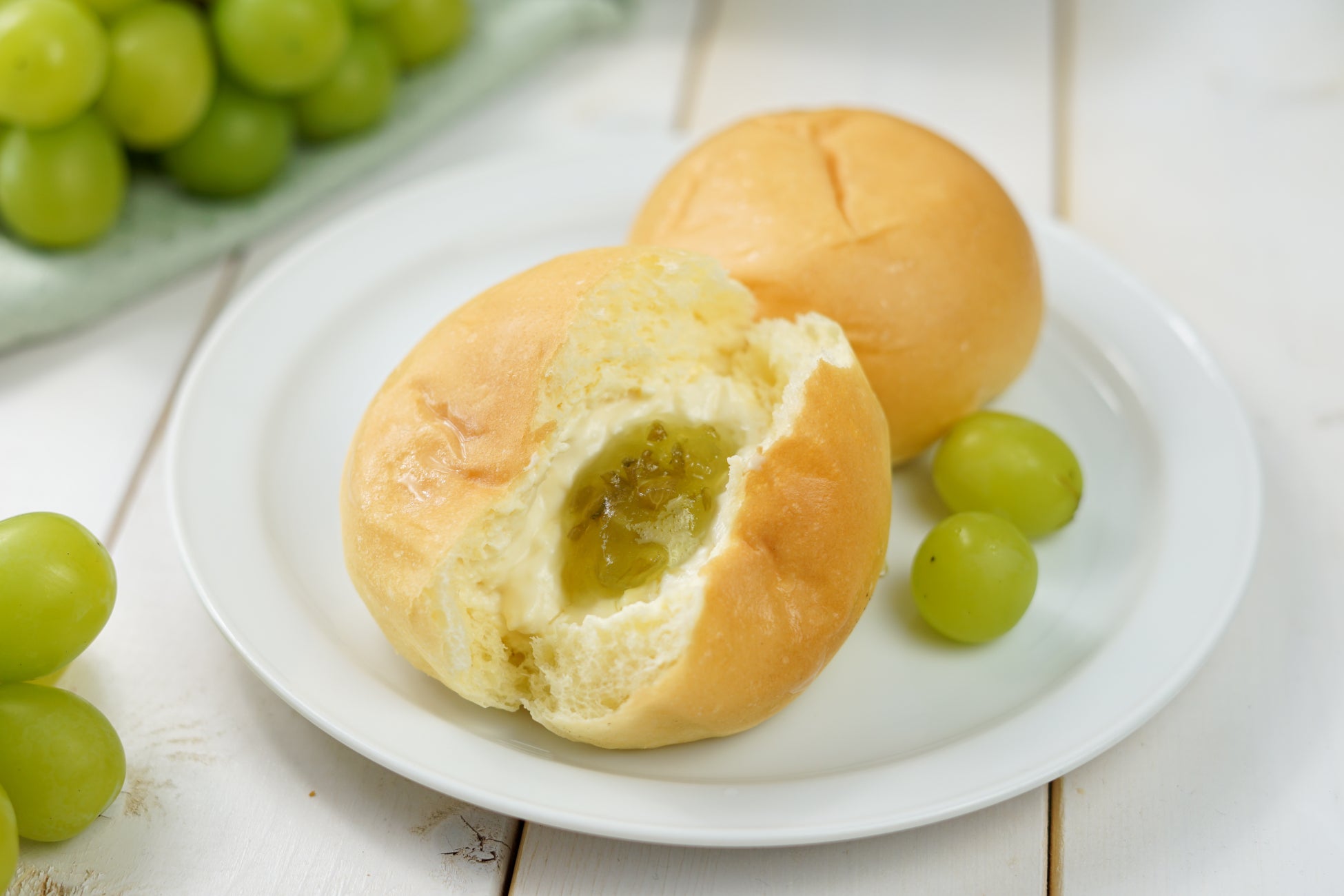 上品で華やかな香りのシャインマスカットジャムを使用したくりーむパンです。