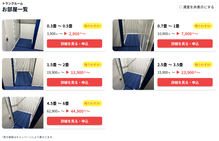 トランクルームってどのくらいの広さで、どの程度の荷物が収まるの?