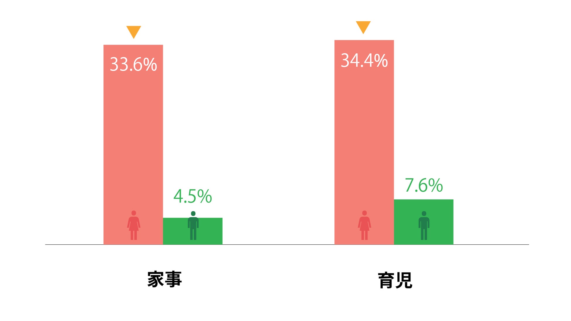 女性は1日の多くの時間を家事・育児に費やしていることがわかります。