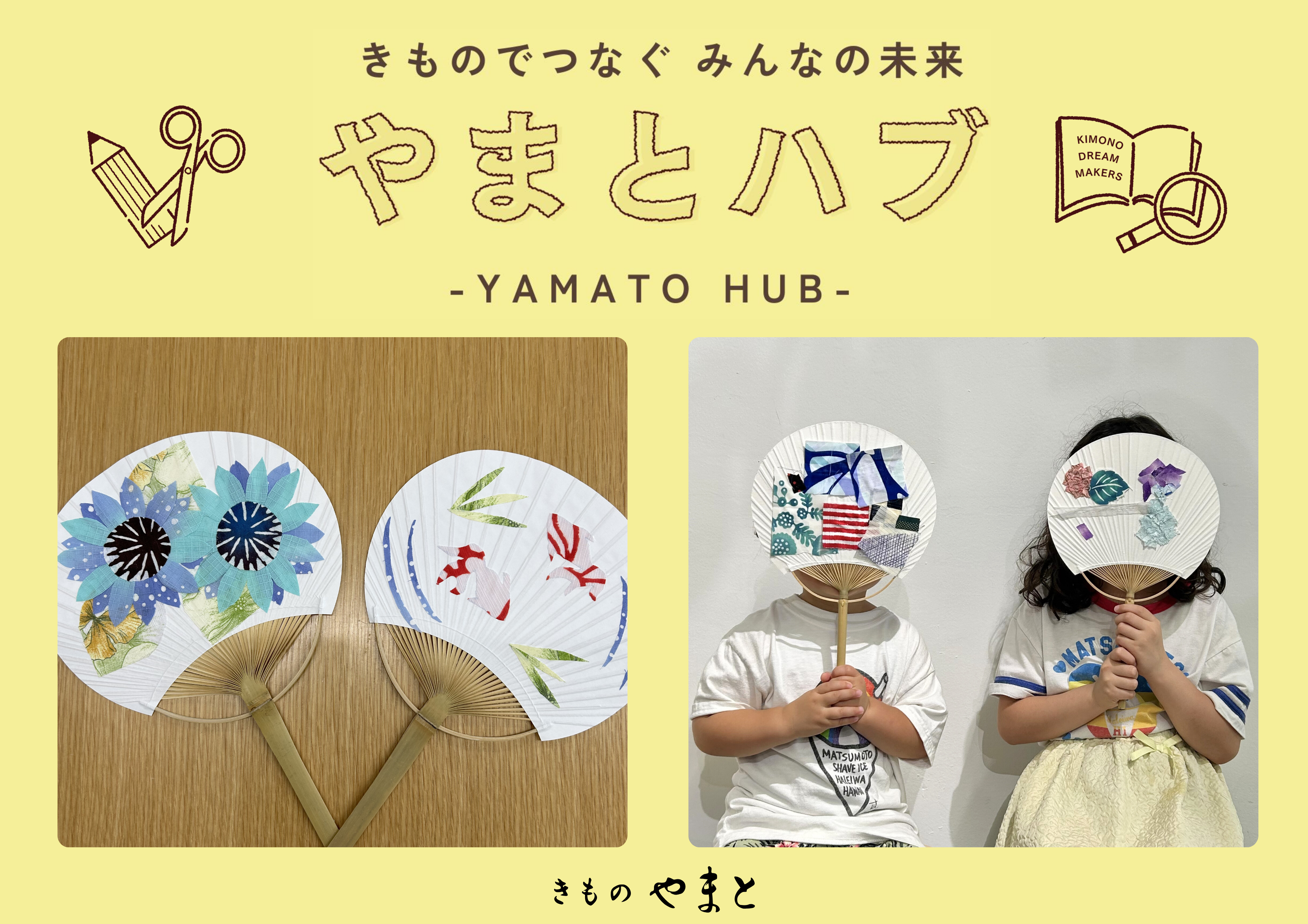 ②「きものやまと」によるオリジナルのうちわ作り体験