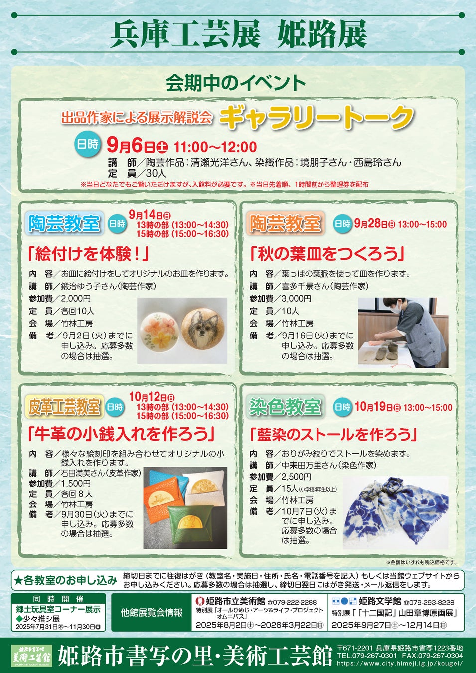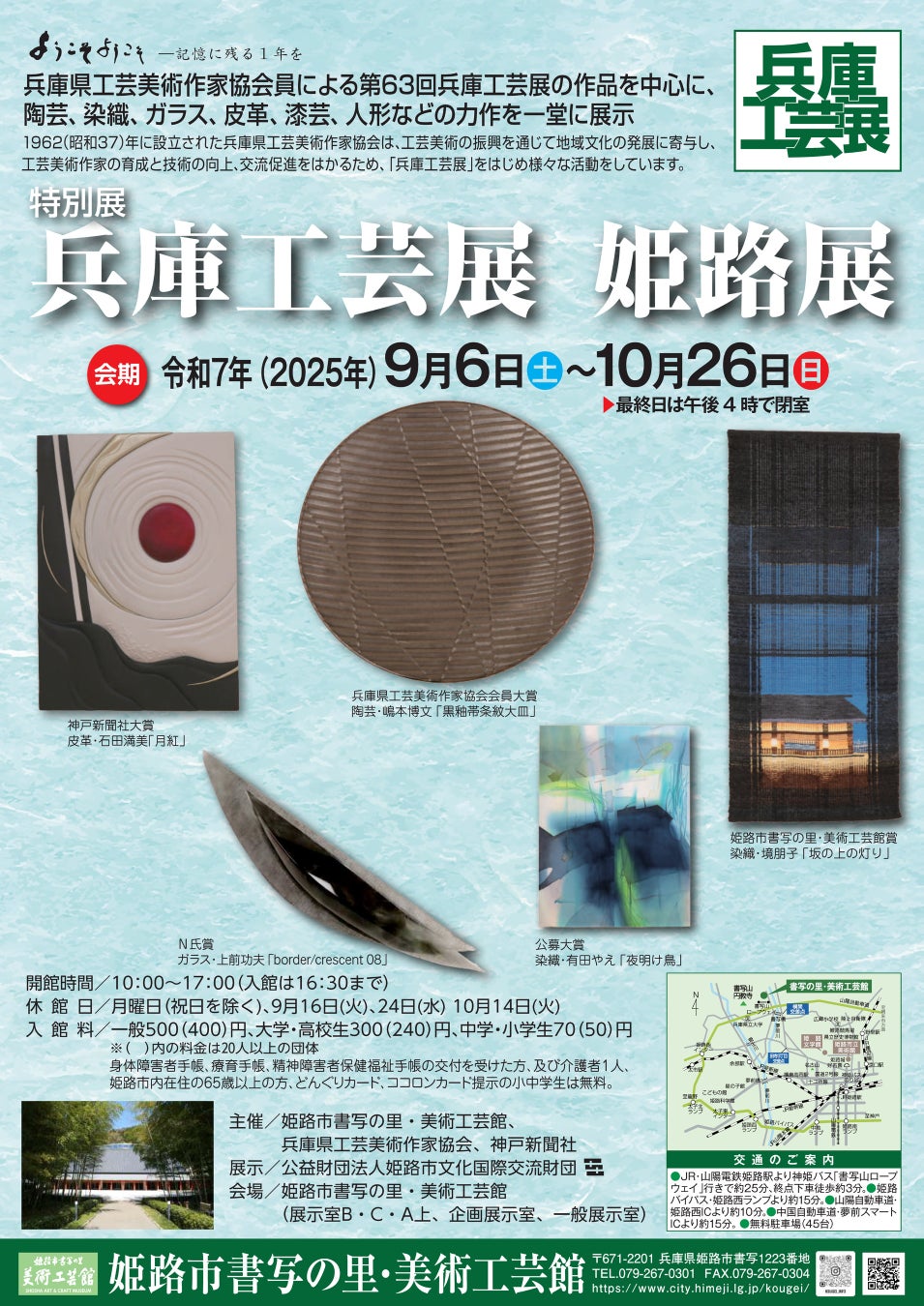 姫路市書写の里・美術工芸館では、令和7年9月6日(土曜日)から10月26日(日曜日)まで特別展「兵庫工芸展姫路展」を開催します。