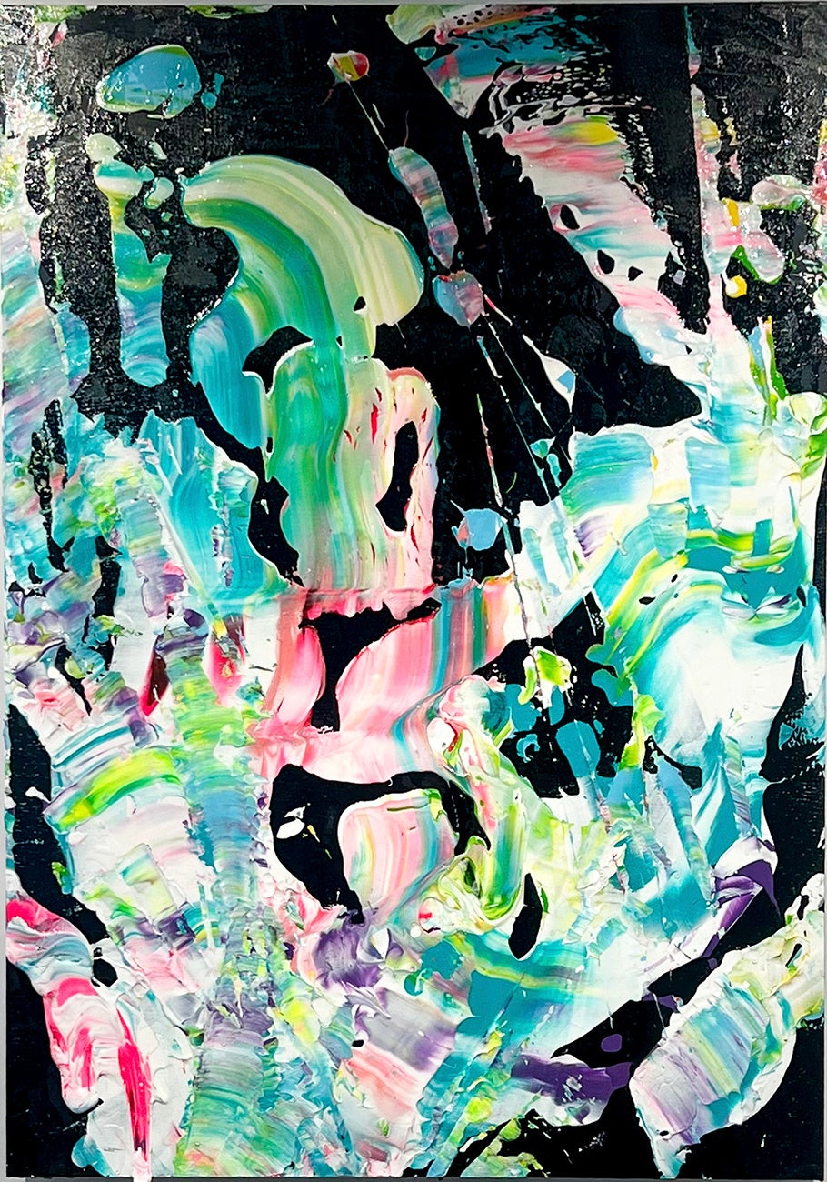 日々の自分の感情を抽象画に落とし込んでいる。抽象的な作品を通して観る人の感情を引き出し、自らと向き合う時間の提供を目的としている。