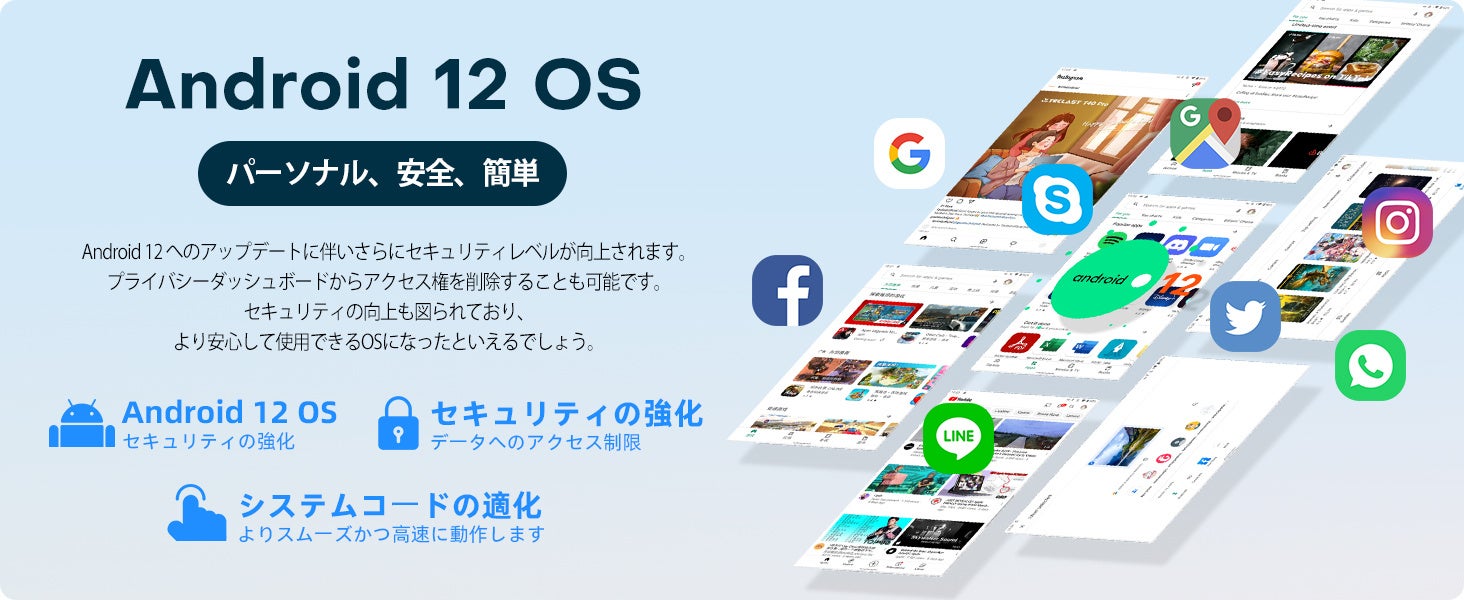 Android 12 OSは、さらに個性的で安全、かつシンプルなユーザーエクスペリエンスを提供します。ユーザーフレンドリーなUIデザインと強化されたシステムロジックにより、タブレットはこれまで以上にスムーズに動作します。ユーザー情報セキュリティを考慮し、強力かつシンプルに設計された新しいプライバシー機能により、誰がいつ自分のデータを見るかをコントロールすることができ、安心です。