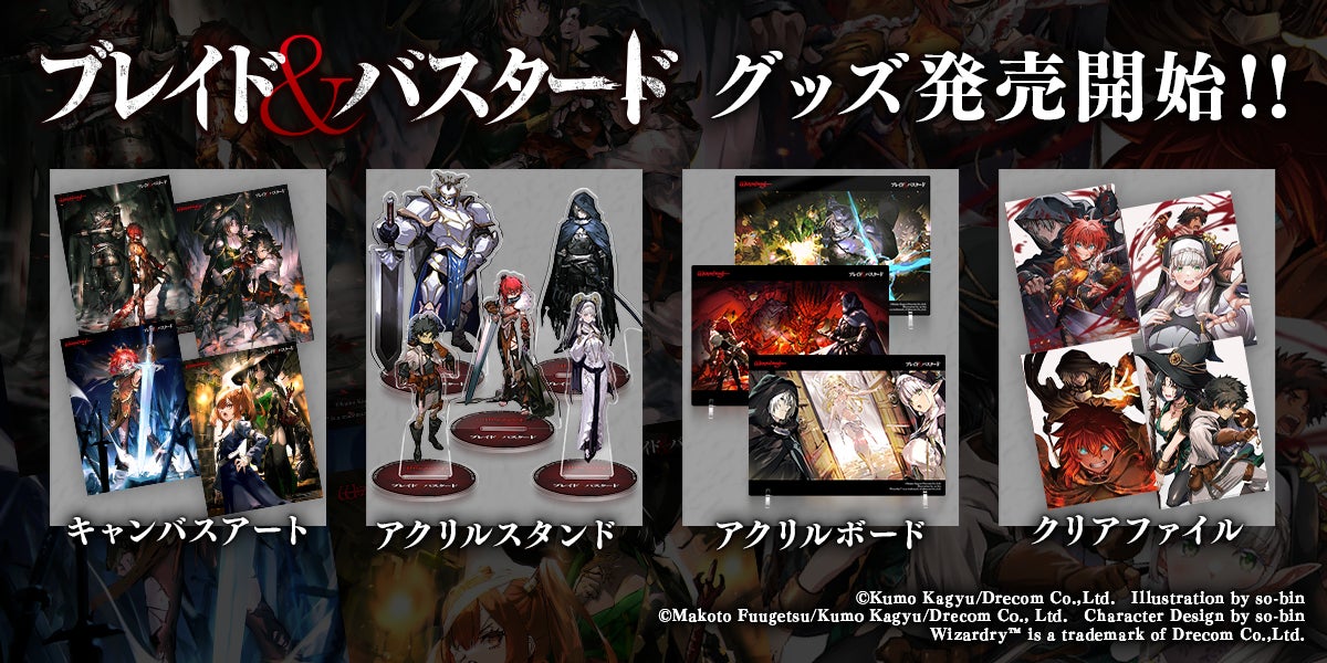 株式会社ドリコム(本社:東京都品川区、代表取締役社長:内藤裕紀)は、本日2024年10月21日(月)より、オンラインショップ「DRECOM SHOP」にて、名作RPG「Wizardry」の世界観で繰り広げられるダークファンタジーシリーズ『ブレイド&バスタード』(著/蝸牛くも イラスト/so-bin 漫画/楓月 誠)のグッズの発売を開始したことをお知らせいたします。