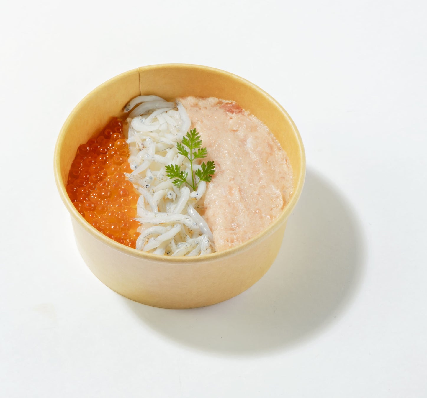 まぐろのたたき、しらす、いくらを敷き詰めた、海の幸が楽しめる一品です。
