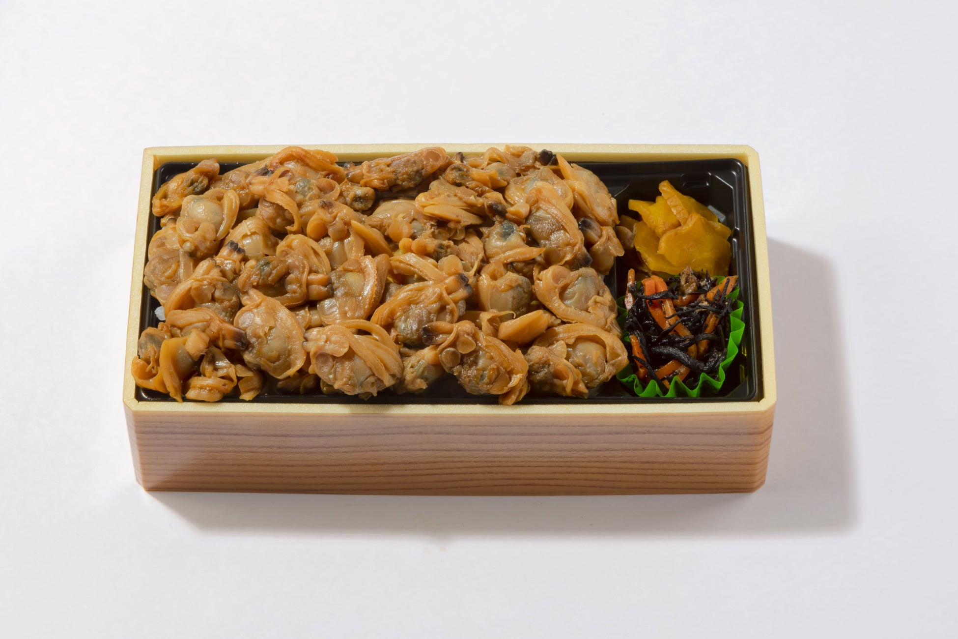 「すしざんまい」を運営する直営ショップで販売する、ビジュアルのインパクトもある深川弁当。たっぷりとのった「あさり」は、生姜がきいた醤油ダレで煮込んでおり、うまみがしみ込んでいて、ボリュームも満点です。あさりの下には錦糸卵と、煮ゴボウも入っており、酒のおつまみにもぴったりです。