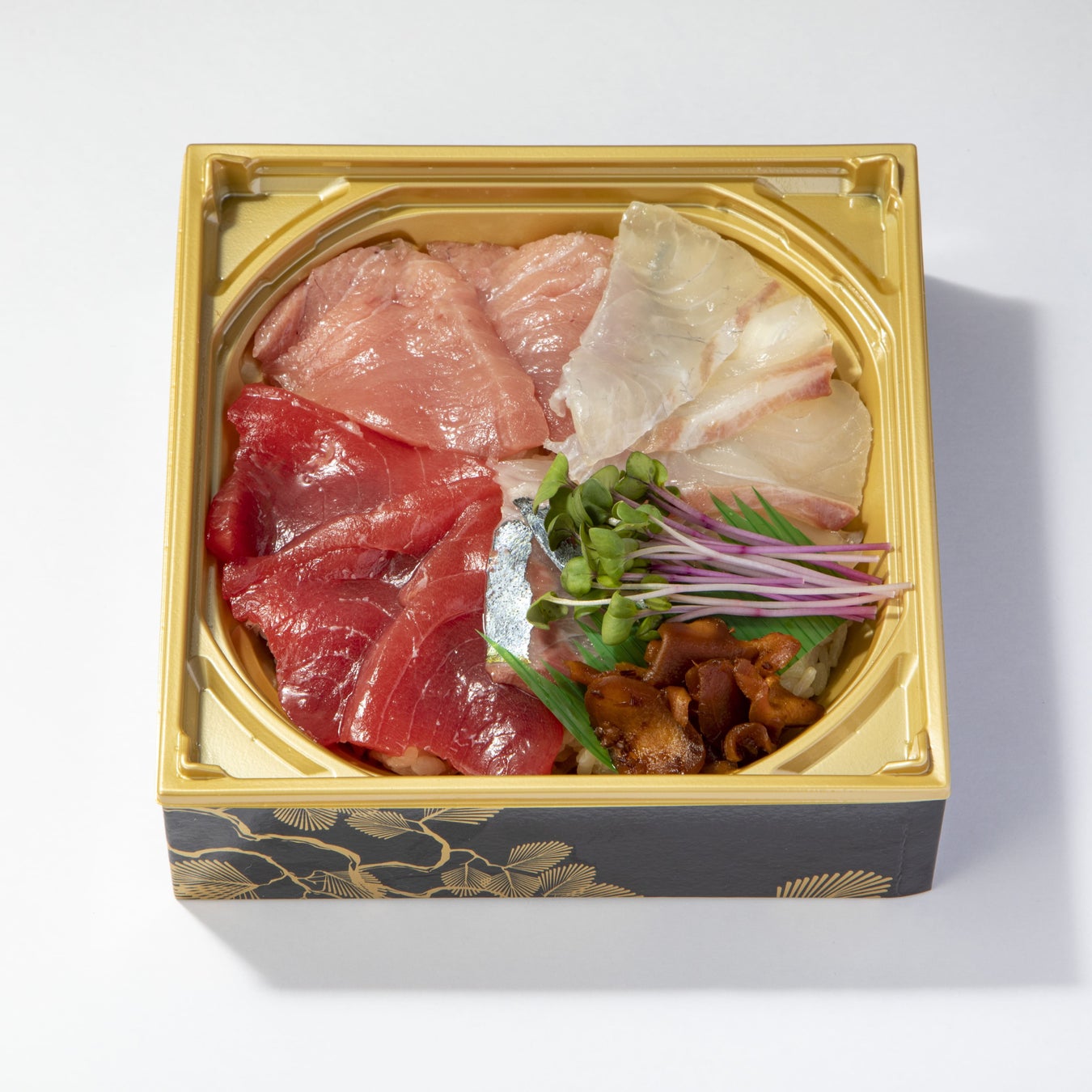 産地直送、鮮度抜群の近大生まれの本マグロ、マダイ、シマアジを一度に味わえる、まさに至極のお弁当!
