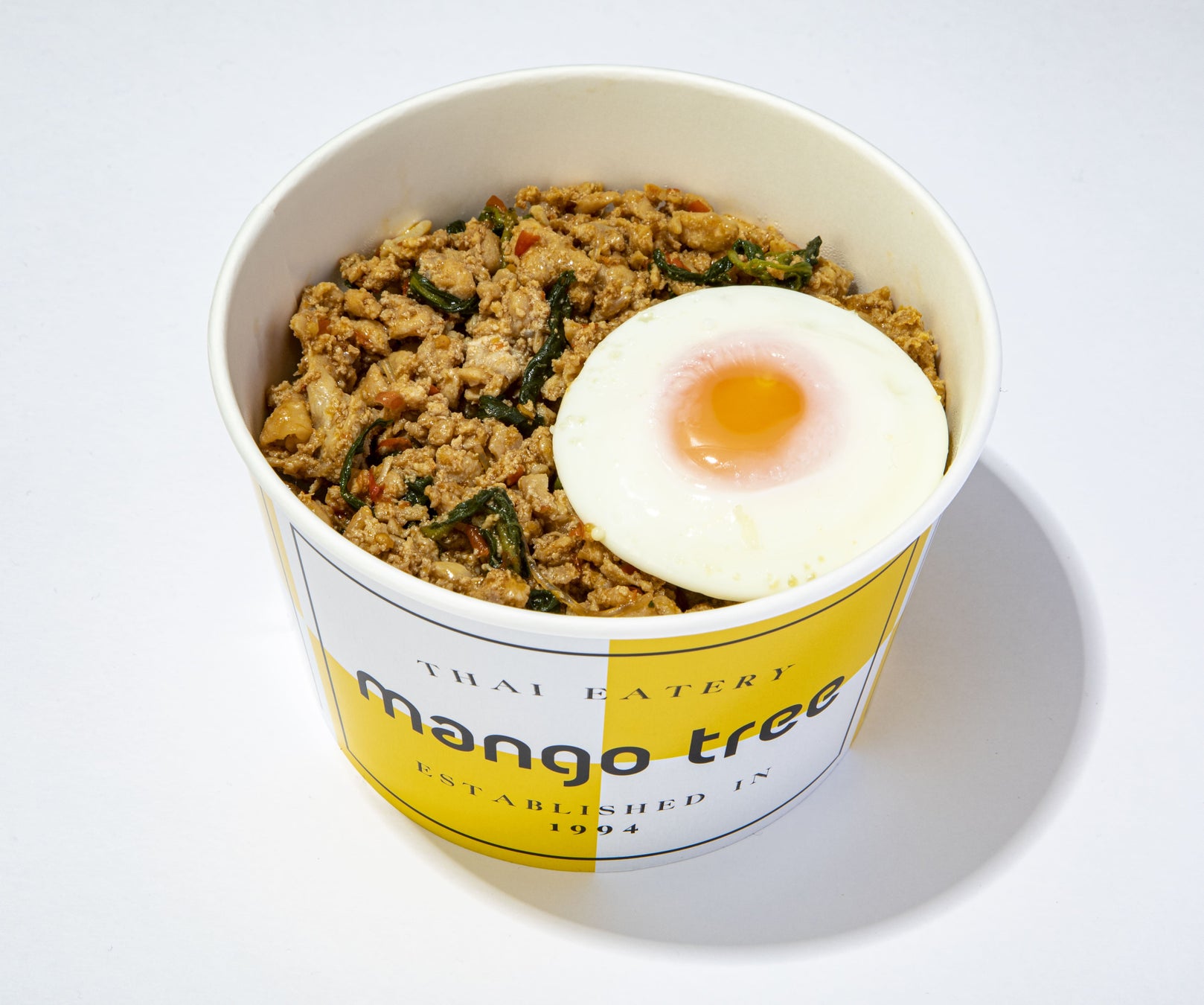 粗挽きの鶏挽き肉の食感とタイバジルの香りが楽しめる、タイ料理の定番ご飯。ほどよくスパイシーで後を引くおいしさが人気です。