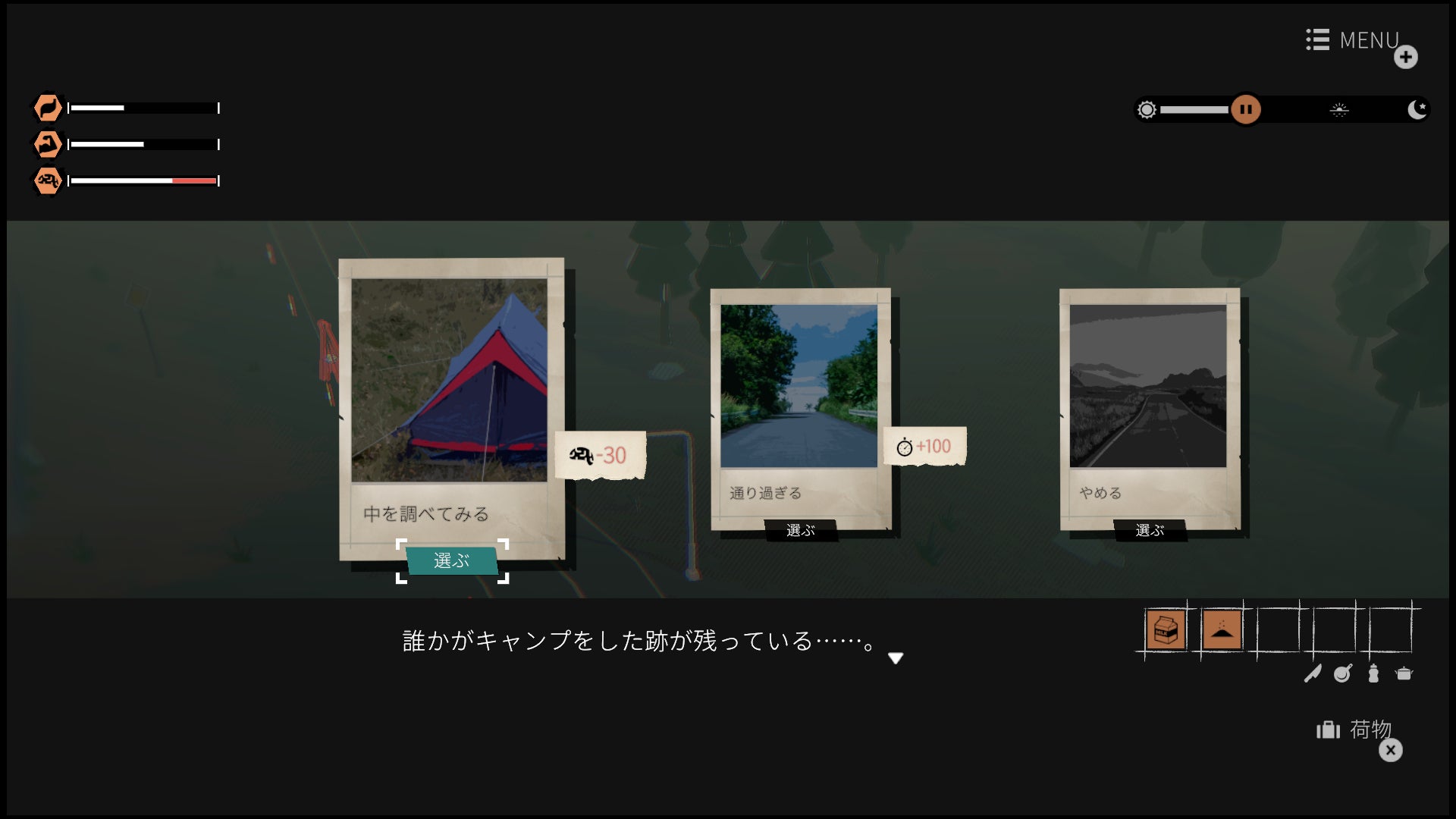 止まっていると物語は進まず、道を走った分だけテキストを読み進めることができます。