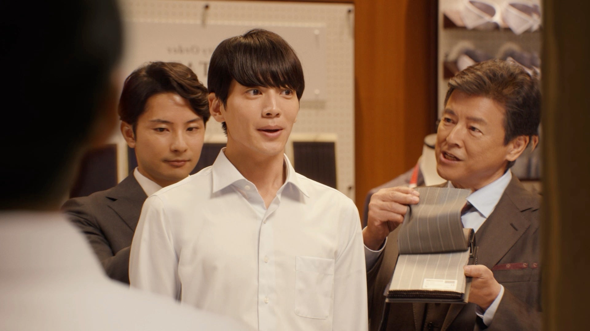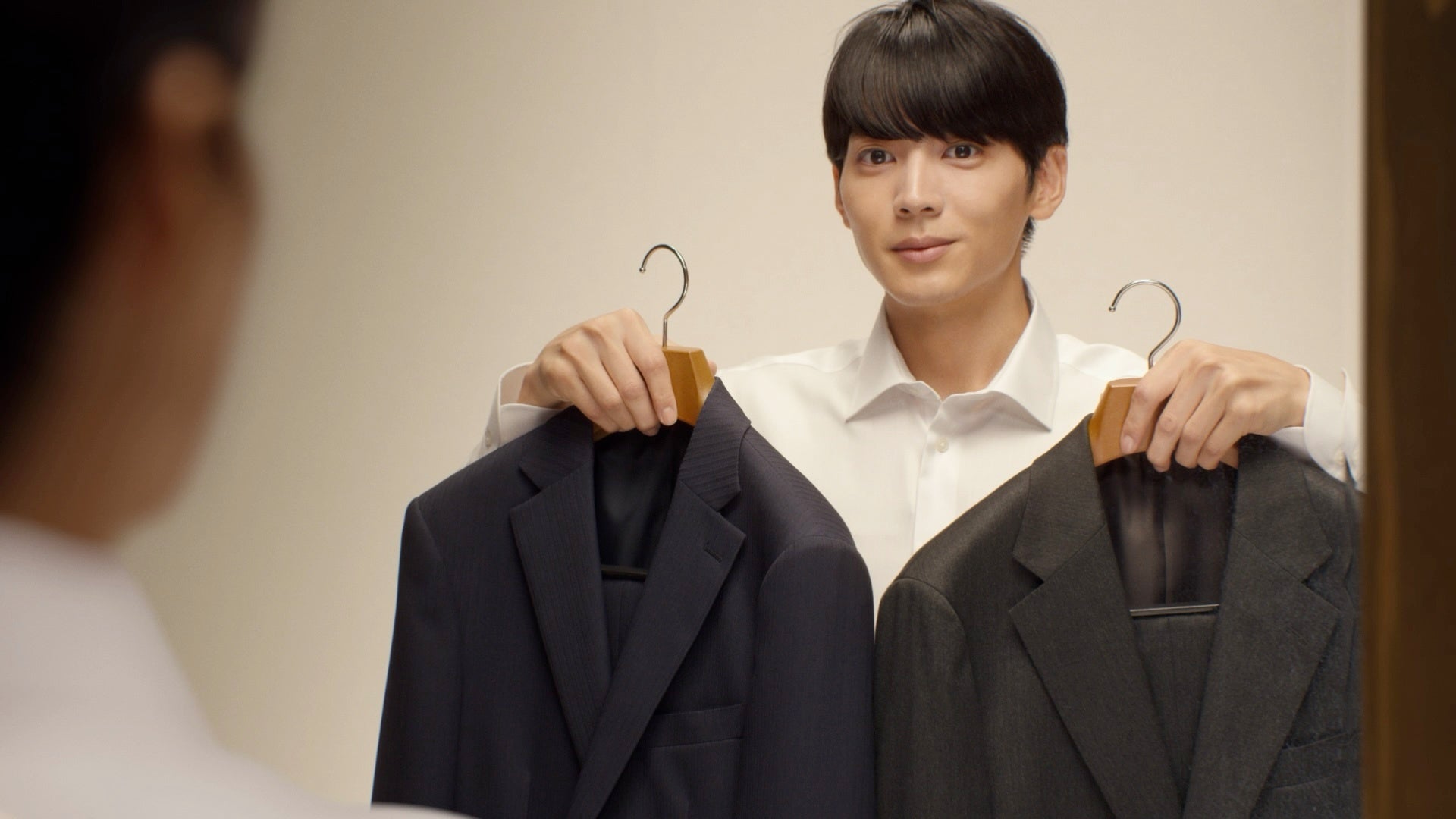 今回は、「洋服の青山」が展開している既製スーツはもちろんのこと、オーダースーツも自由にお客様が選択できることを三浦友和さんと橋本環奈さんが表現をしたCMです。既製スーツでもオーダースーツでも、どちらでもお客様が満足のいく一着を『仕立てる』。スーツの選択肢が増えることで、「洋服の青山」の強みを訴求していく内容となっています。