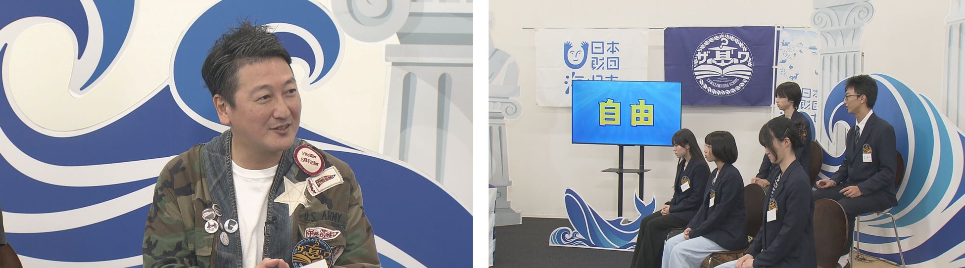 これまでの哲学対話では生徒たちの実体験や知っている知識を基に本質観取を行ってきましたが、今回はジャーナリストの堀潤さんが日本や世界各地を取材して得た「自由にまつわるエピソード」を生徒たちに披露しそこから一歩先にある「自由の本質」を目指すことになりました。
