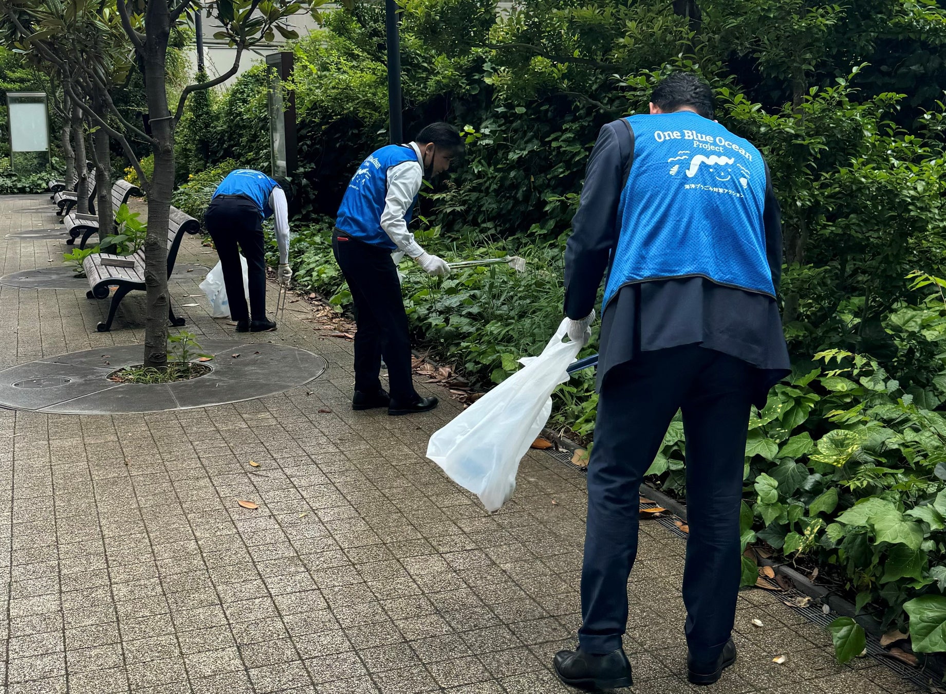 当社は、地域社会への貢献を目的に2003年以降、各地の清掃活動を行っています。また、ソニーグループでは2019年度より海洋プラスチック汚染問題への対策として、製品や事業所におけるプラスチック使用量削減や事業所によるプラスチックごみの回収・清掃活動をさらに推進する「One Blue Ocean Project」を展開しております。当社ではその一環として、2024年6月3日および6日に、当社の大手町本社周辺の清掃活動を行いました。
