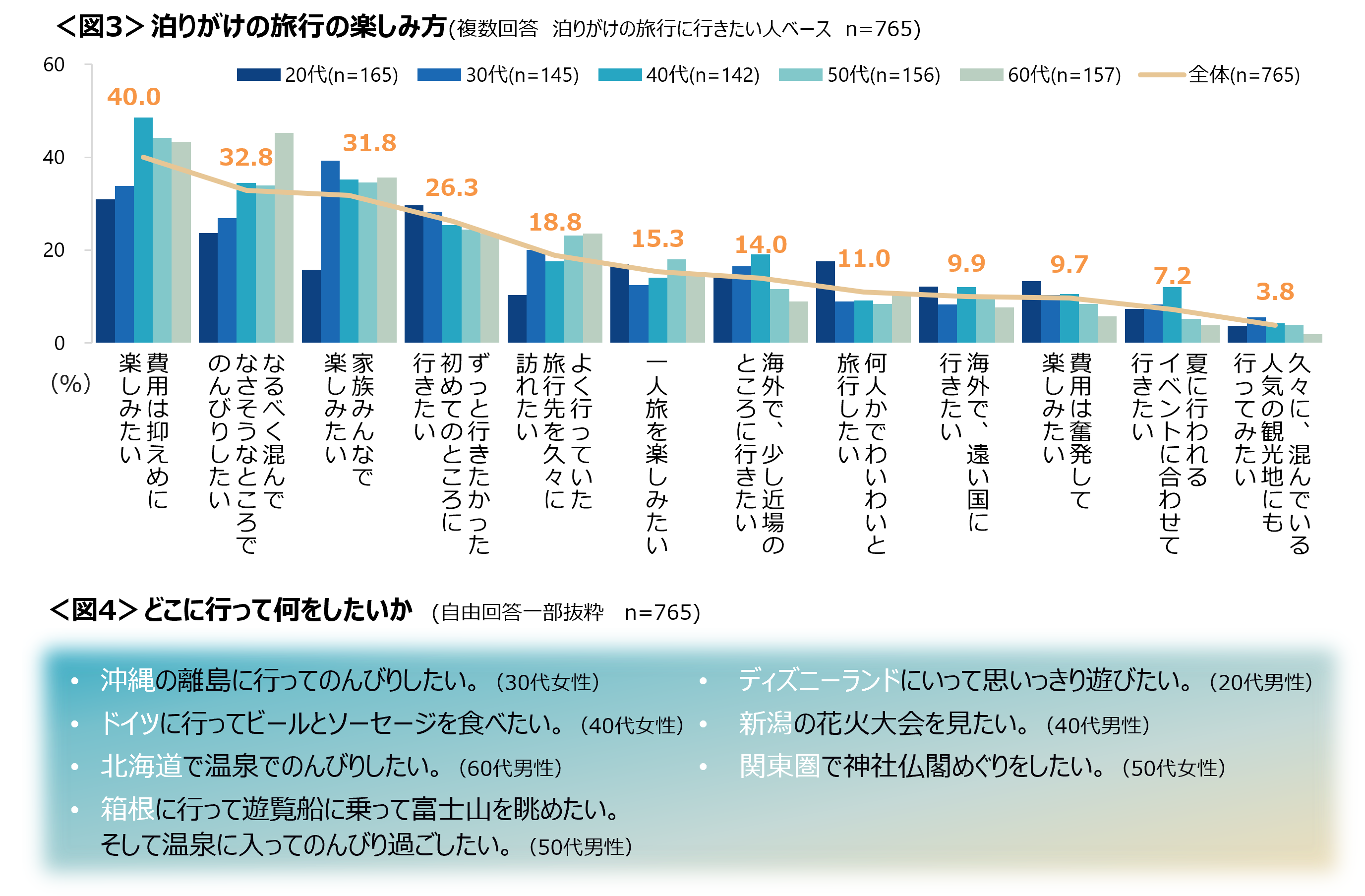 泊りがけの旅行の楽しみ方として、「費用は抑えめに楽しみたい」人が4割。<図3>