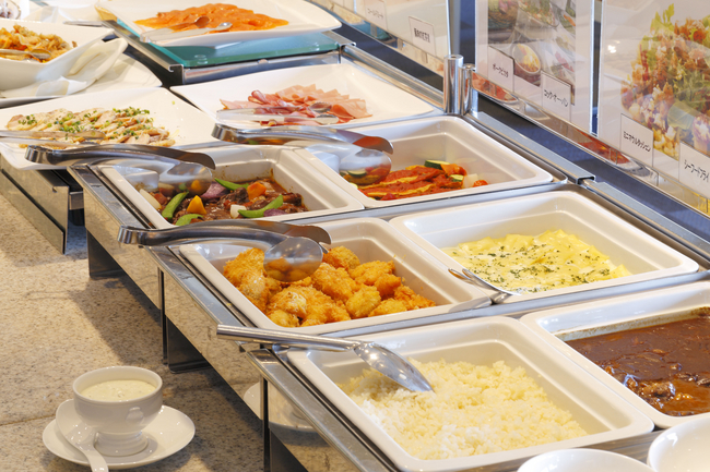 内容:ローストビーフやチーズ桶で仕上げるパスタ、デザートなど約30種類