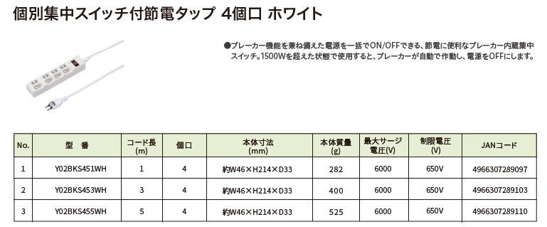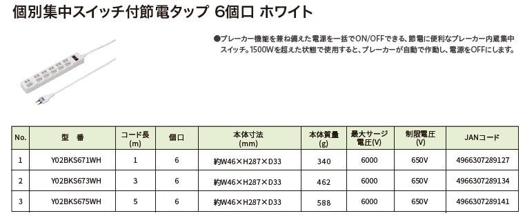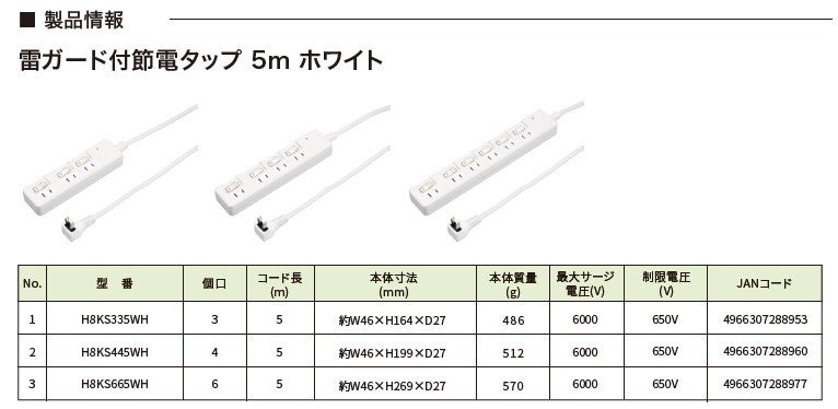 インテリア家電製品および、PCサプライ品の製造販売を手掛ける株式会社ヤザワコーポレーションは、雷ガード付き節電タップシリーズを6月中旬頃に発売いたします。